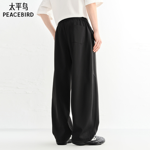 森马宽松弯刀棉感斜纹休闲长裤男