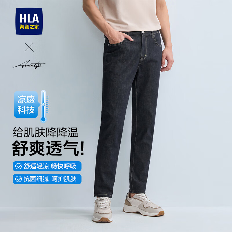 HLA海澜之家牛仔裤男轻商务时尚凉感刺绣裤子男春季