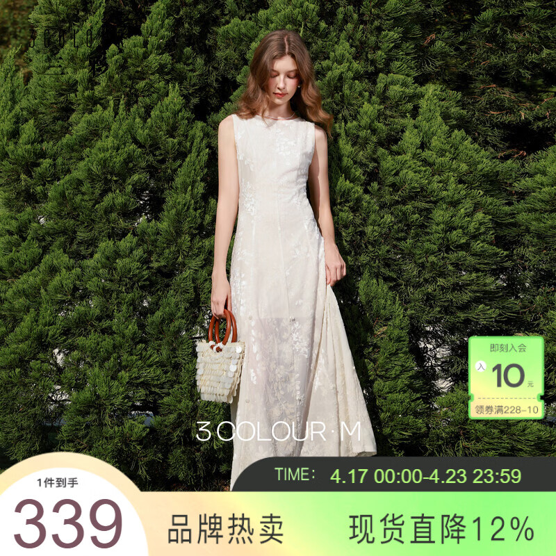 三彩2026春季新款圆领无袖收腰连衣裙三穿A字裙长裙气质优雅M