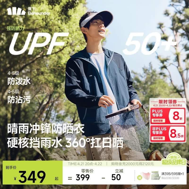 蕉下(beneunder)防晒衣男薄外套皮肤衣防紫外线透气户外钓鱼WR937蓝XL