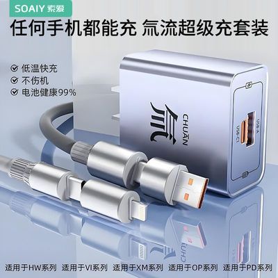 索爱氚流超级快充充电头套装双口四合一数据线适用于苹果安卓华为