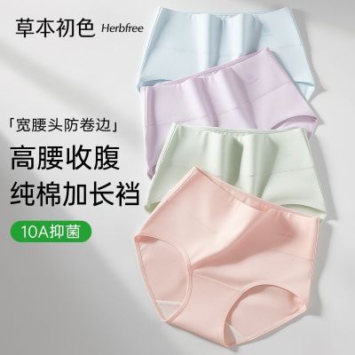 草本初色【A类棉益生菌系列】4条装女士高腰内裤女100棉裆10A抑菌