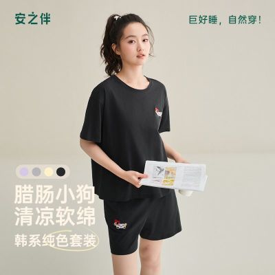 安之伴夏季纯棉女款睡衣休闲舒适宽松短袖家居服多色可选套装可外