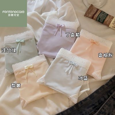 芬腾可安冰丝无痕内裤a类抑菌加长棉裆少女生中腰蕾丝花边三角裤
