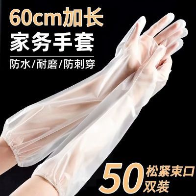 一次性家务手套加长束口厨房洗碗加厚洗衣服防水长袖防滑耐磨手套