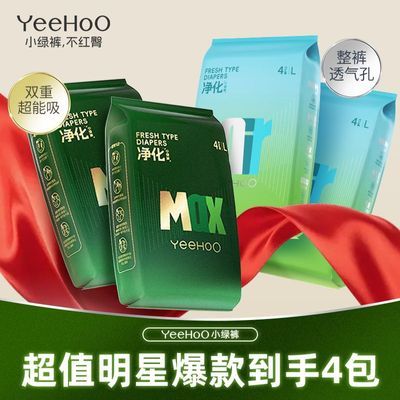 【4包装】YEEHOO小绿裤拉拉裤L码婴儿纸尿裤透气干爽
