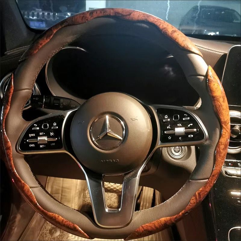 汽车方向盘套桃木纹皮革丝印工艺方向盘套高档豪华把套卡扣套用品