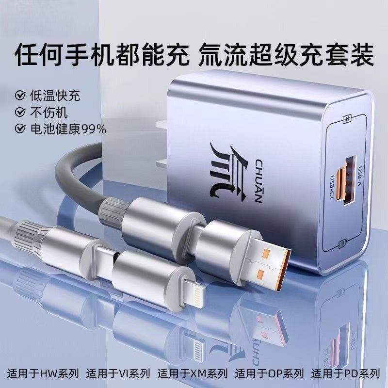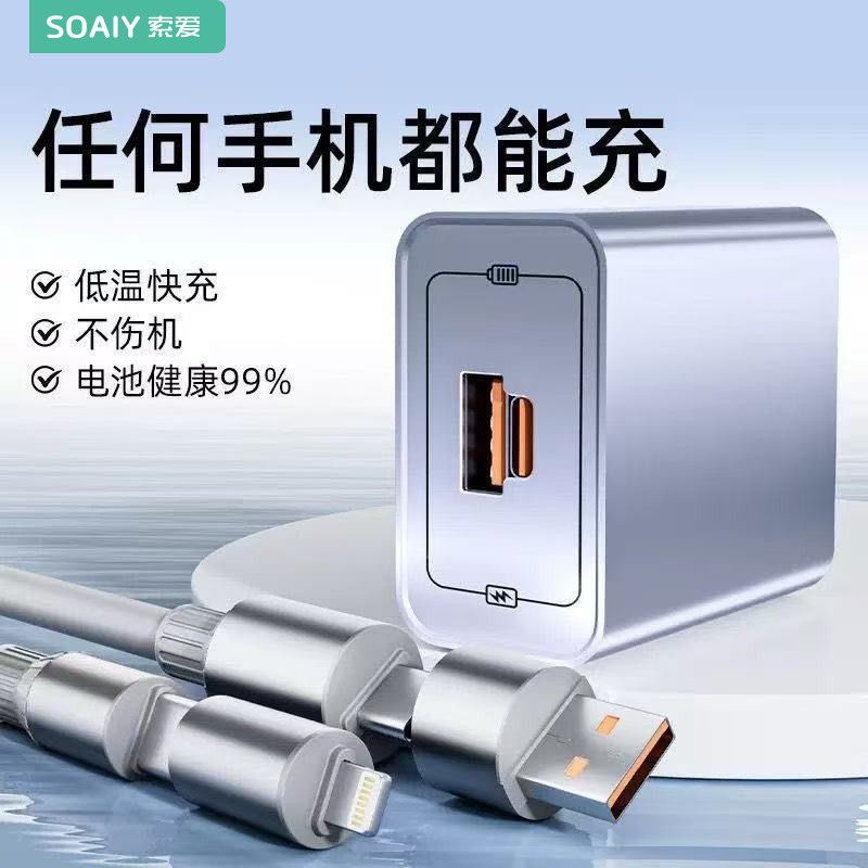 索爱氚流超级快充充电头套装双口四合一数据线适用于苹果安卓华为