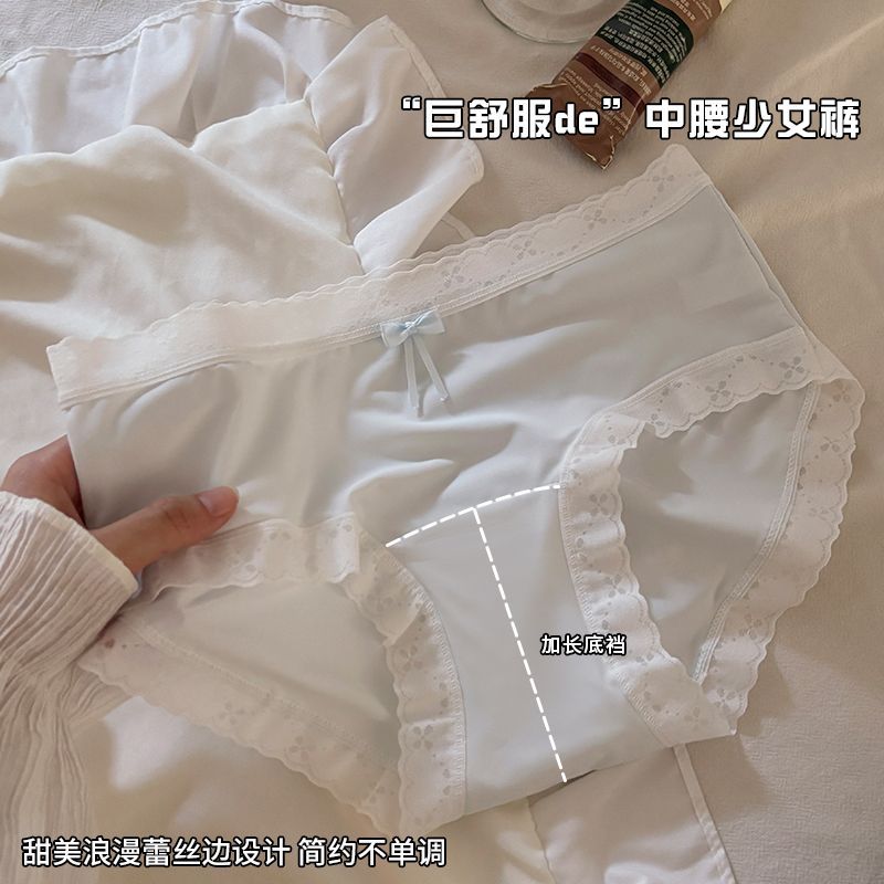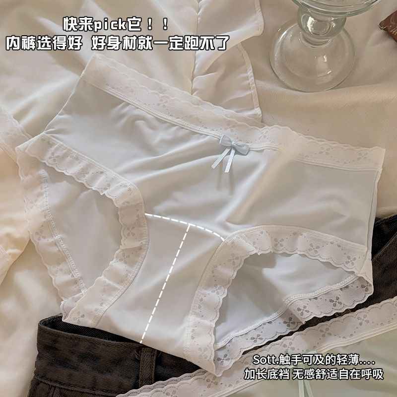 芬腾可安冰丝无痕内裤a类抑菌加长棉裆少女生中腰蕾丝花边三角裤