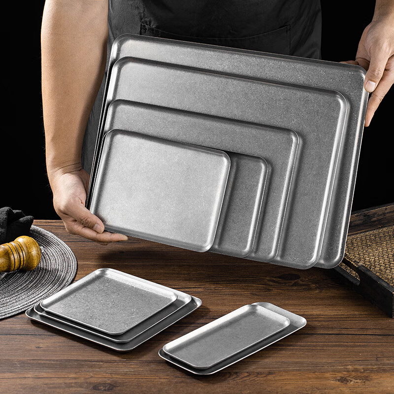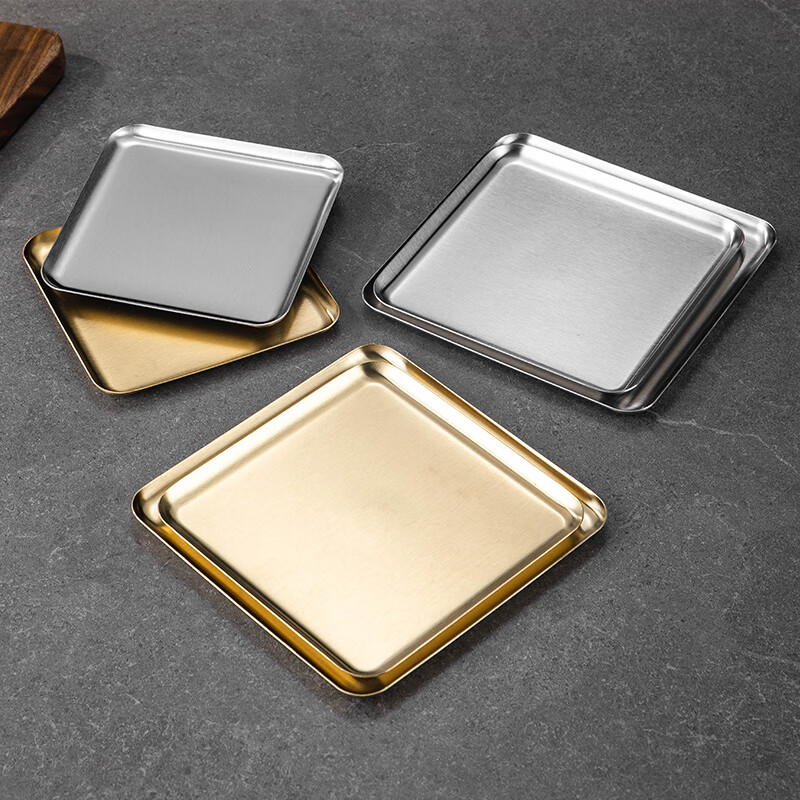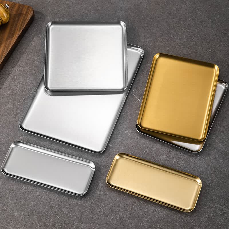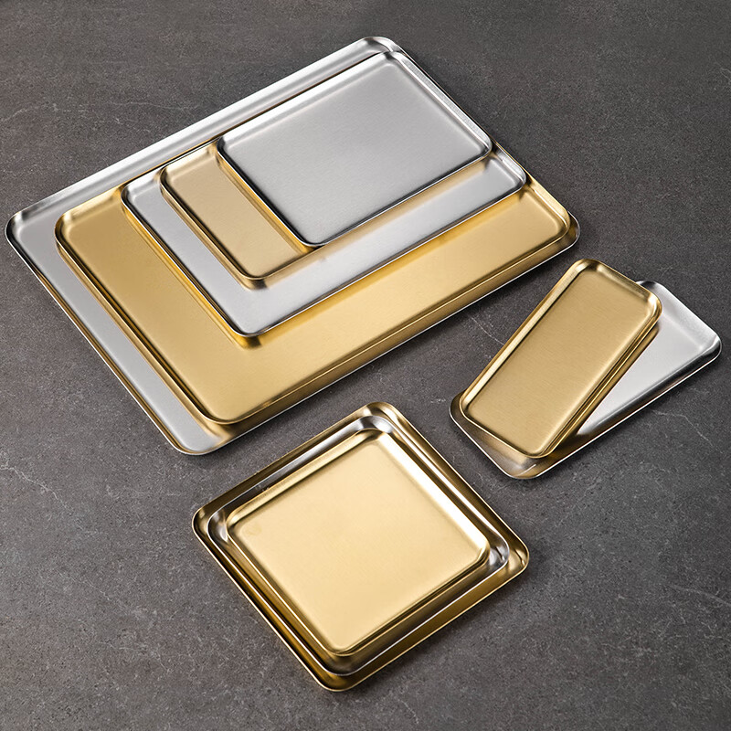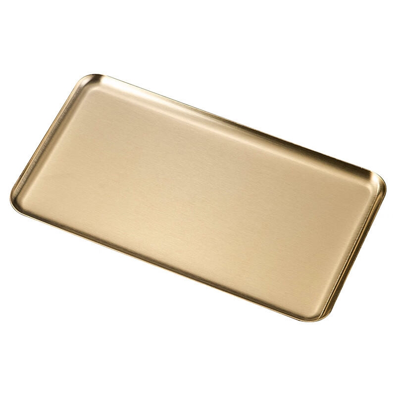 方形盘韩式不锈钢长方形咖啡厅托盘直边金色烧烤盘 加厚直边盘【20*15本色】