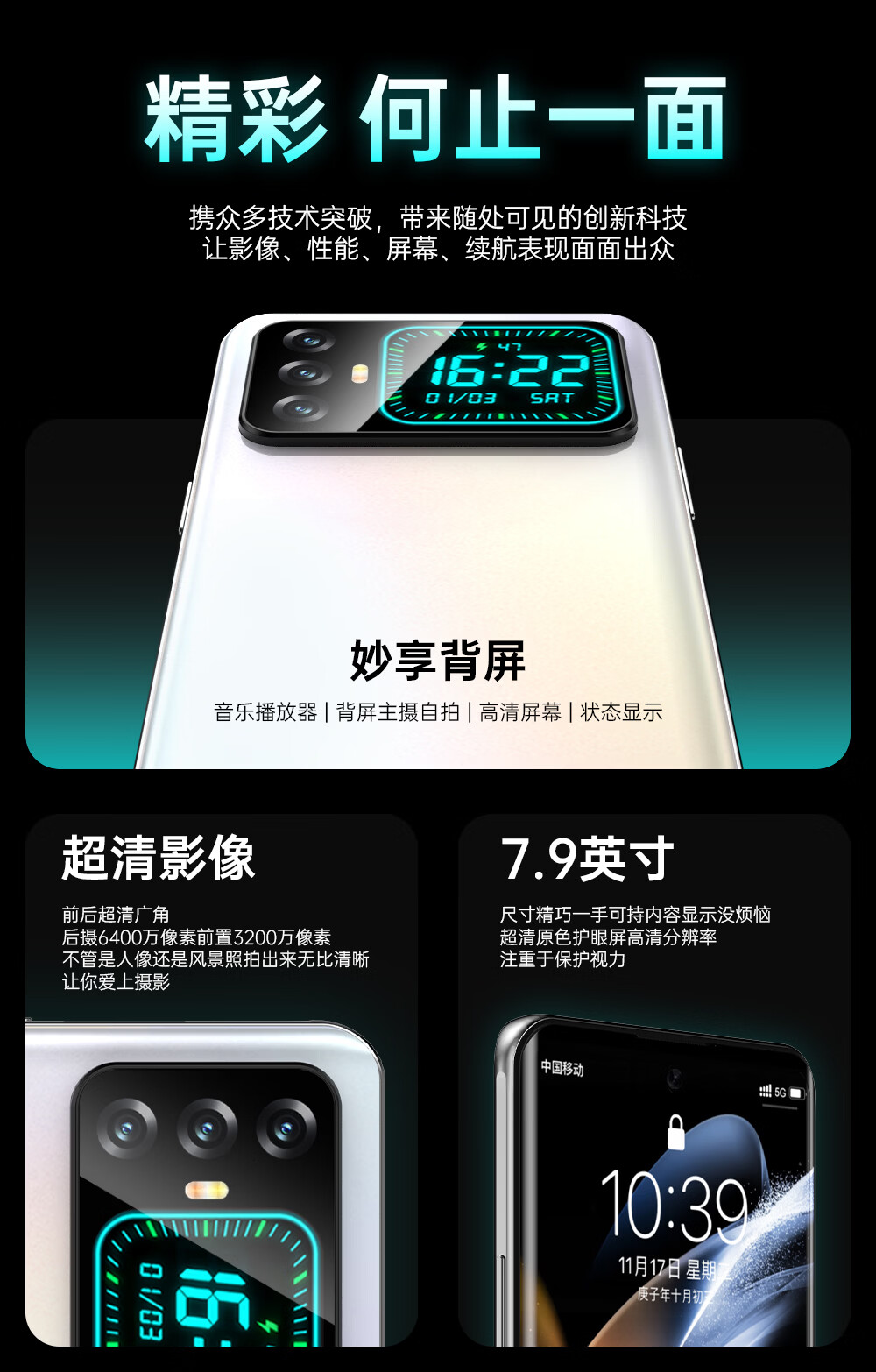 HUWEI2026新品双屏手机【补贴25%】1TB超大内存 快充长续航学生游戏电竞 AI智能拍照 抗摔防水 全新原装 大漠银月 16GB运行+512GB内存 2026旗舰升级