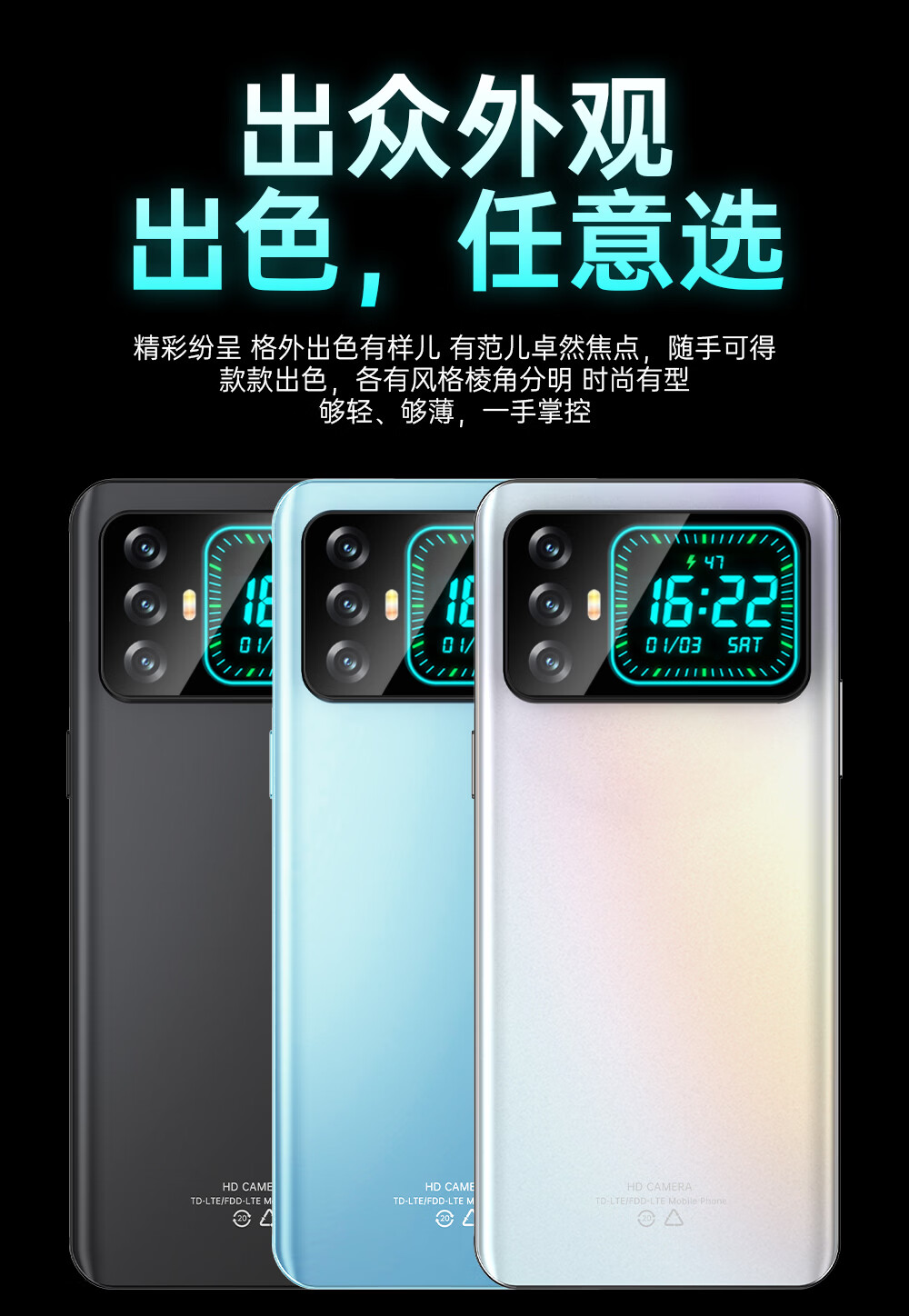 WUHADP正品新款手机512G内存8.9英寸超大屏幕18000毫安长续航全网通5G双卡红外遥控指纹解锁大字体大声音 黑色 16GB+1TB