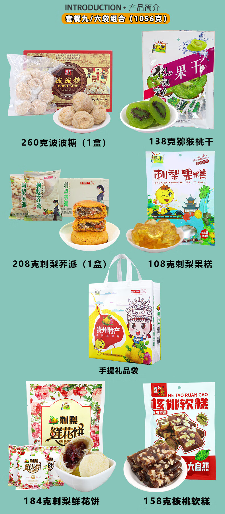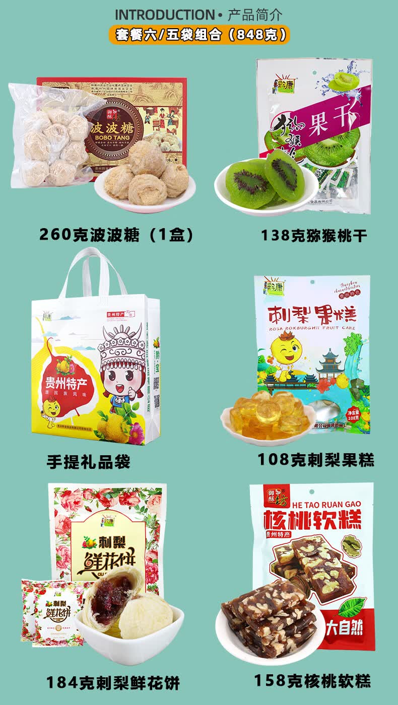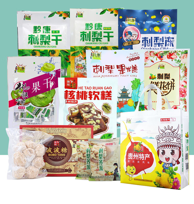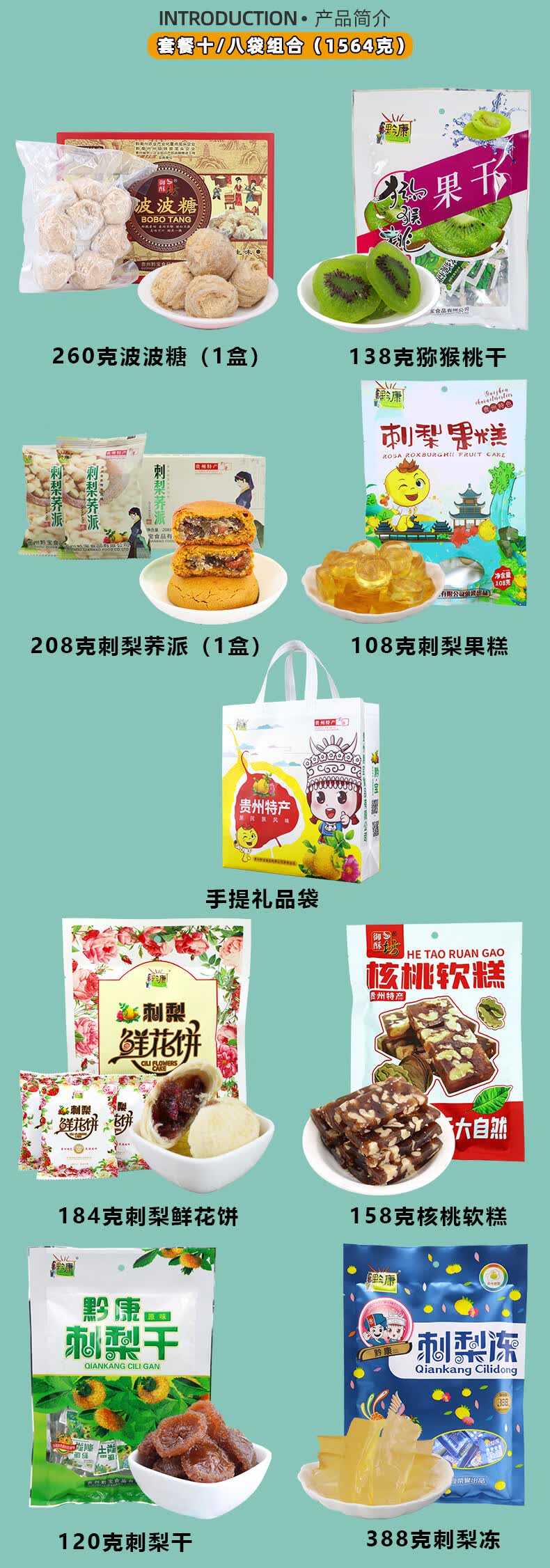 黔康 贵州特产零食组合大礼包贵阳刺梨干鲜花饼波波糖核桃软糖小吃 套餐十/8袋组合 共1564g