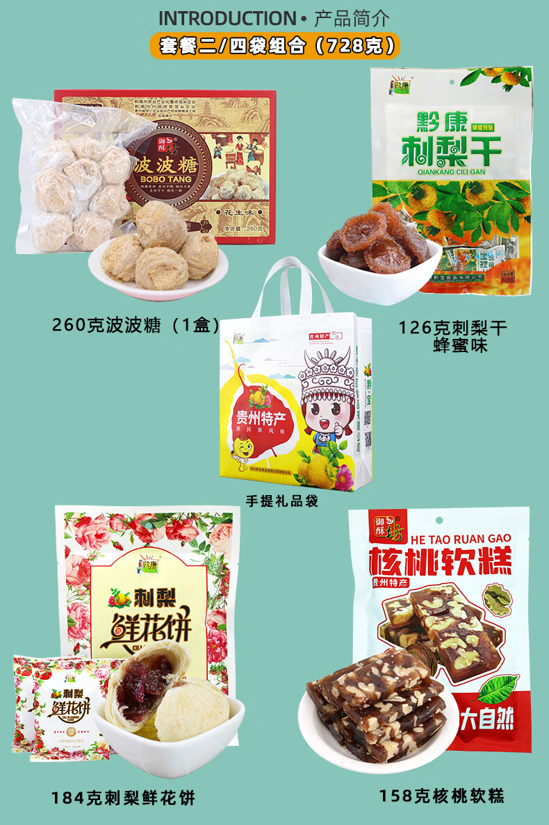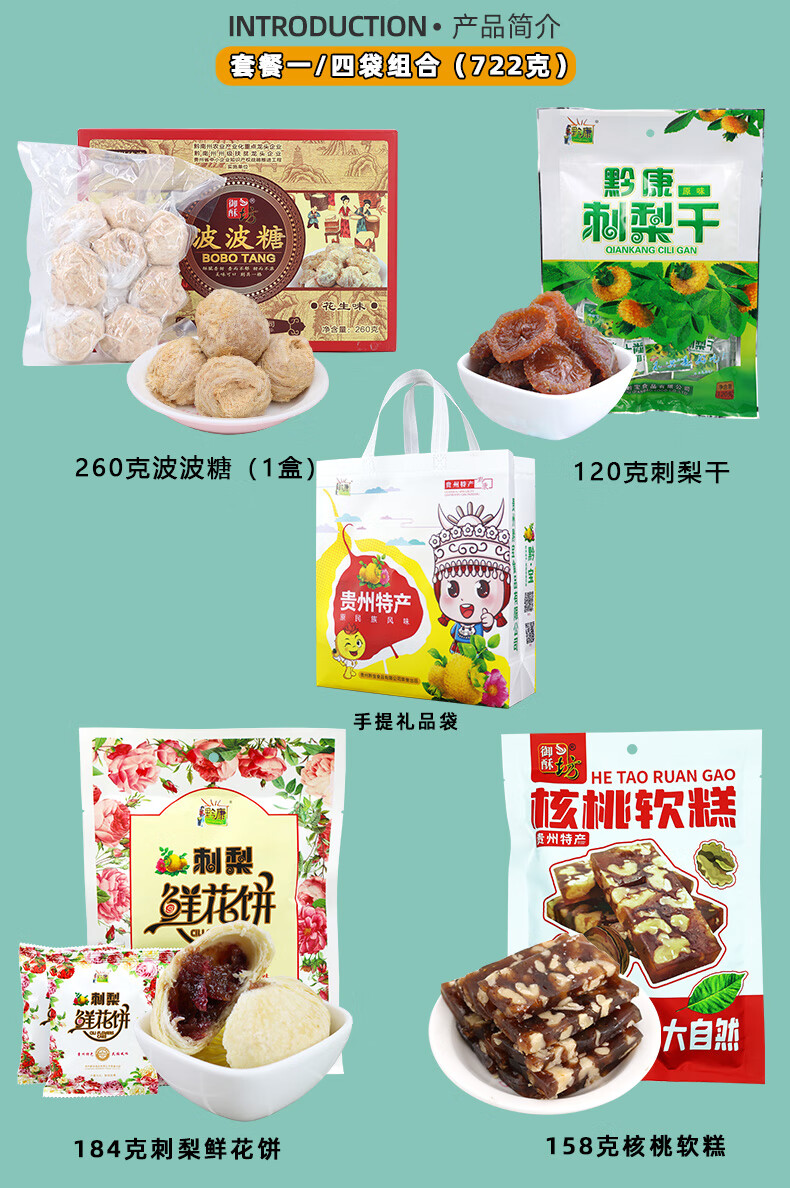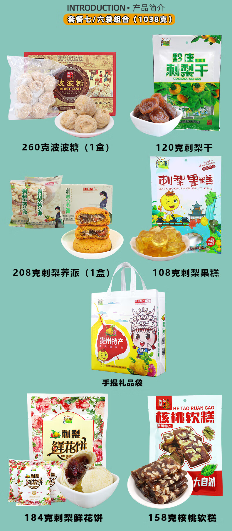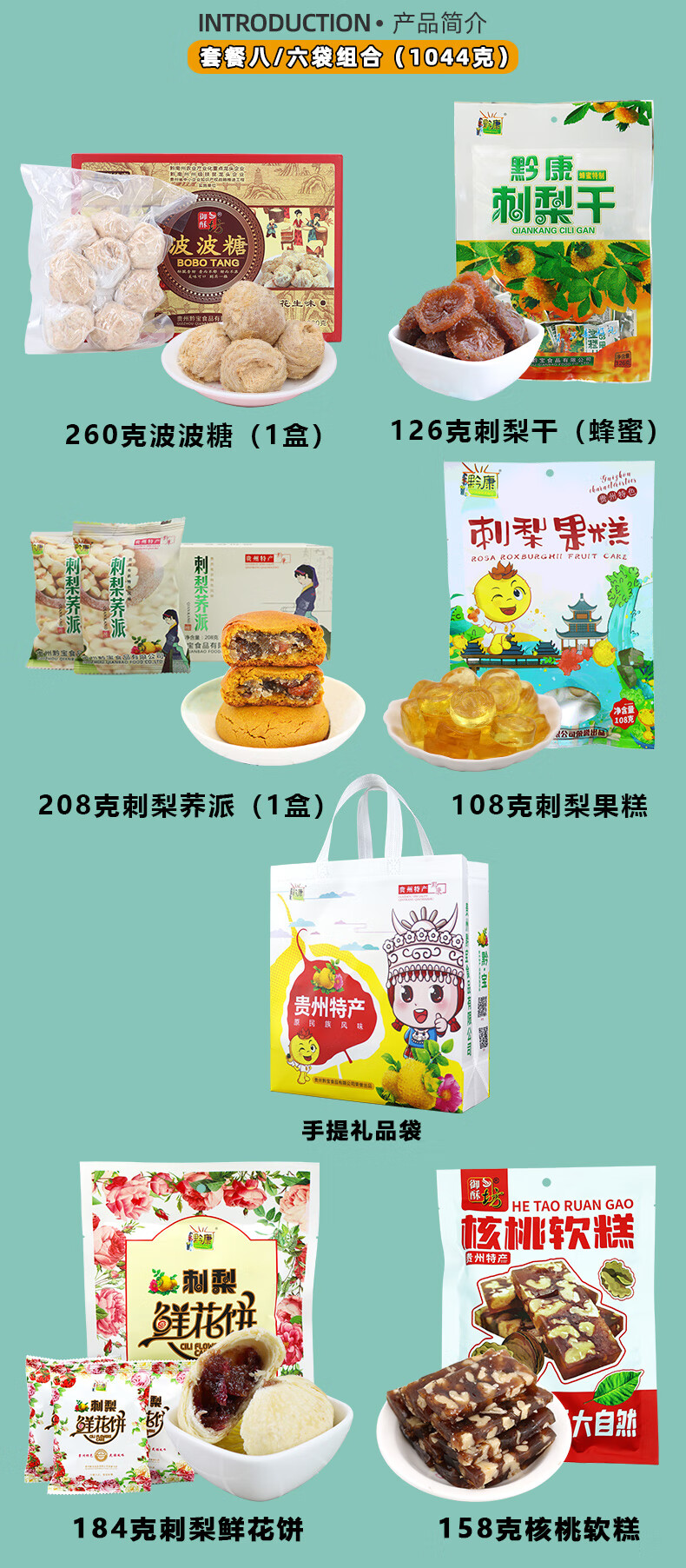 黔康 贵州特产零食组合大礼包贵阳刺梨干鲜花饼波波糖核桃软糖小吃 套餐十/8袋组合 共1564g