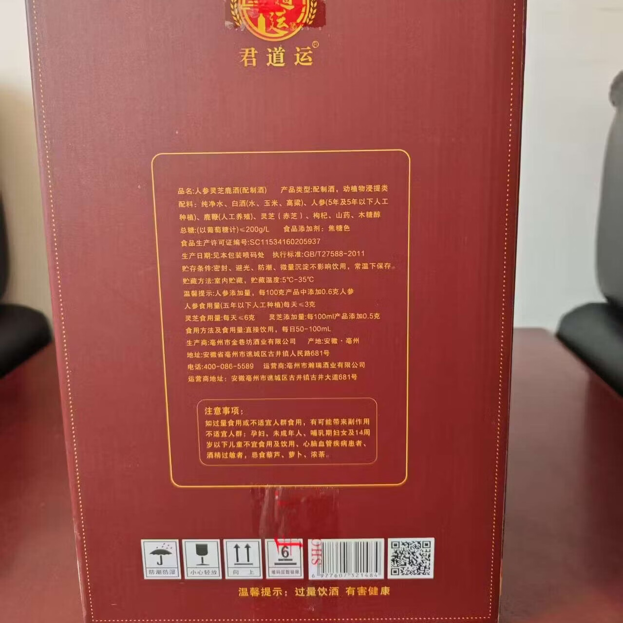 君道运送礼自饮泡酒 52度 2500mL 1瓶 黄精鹿鞭肉苁蓉酒