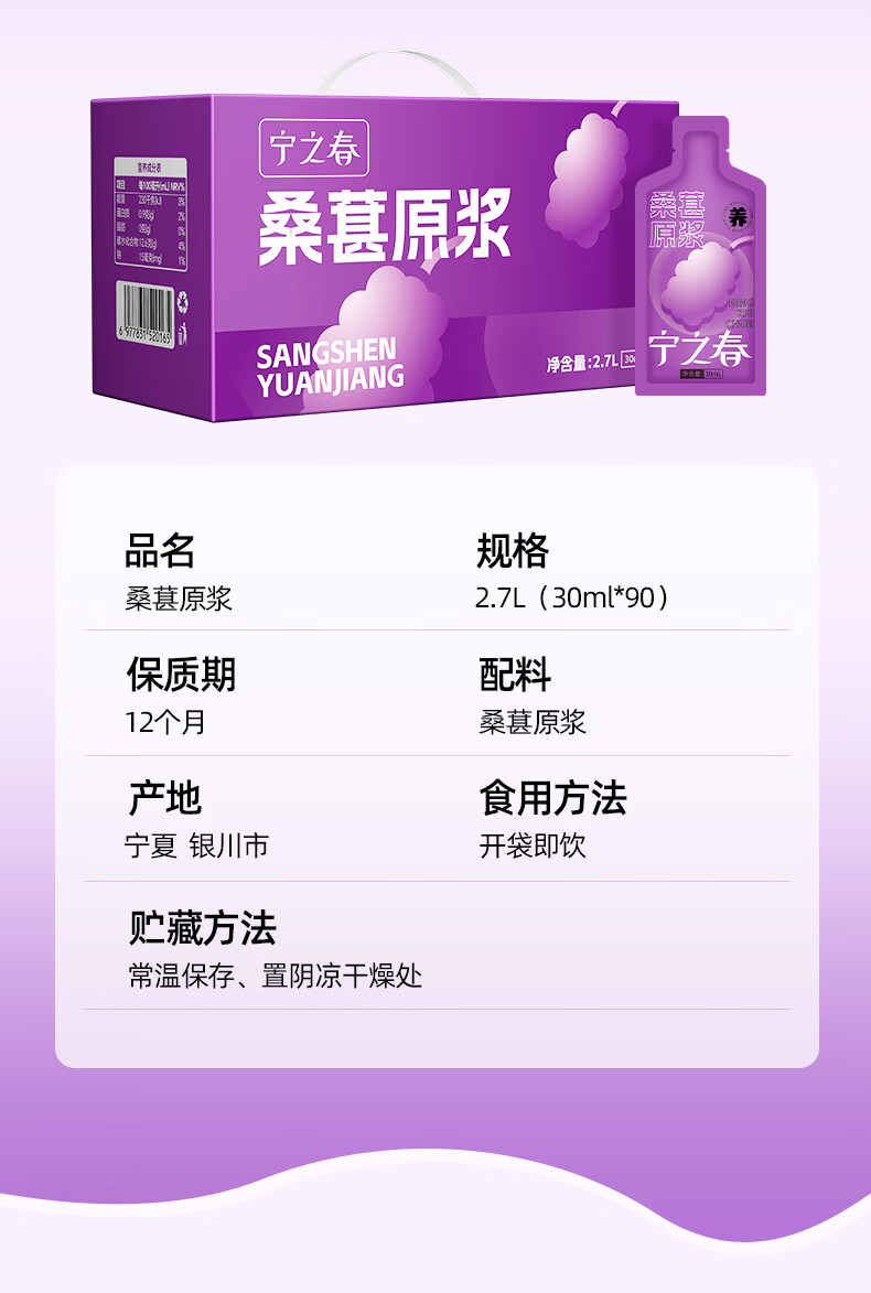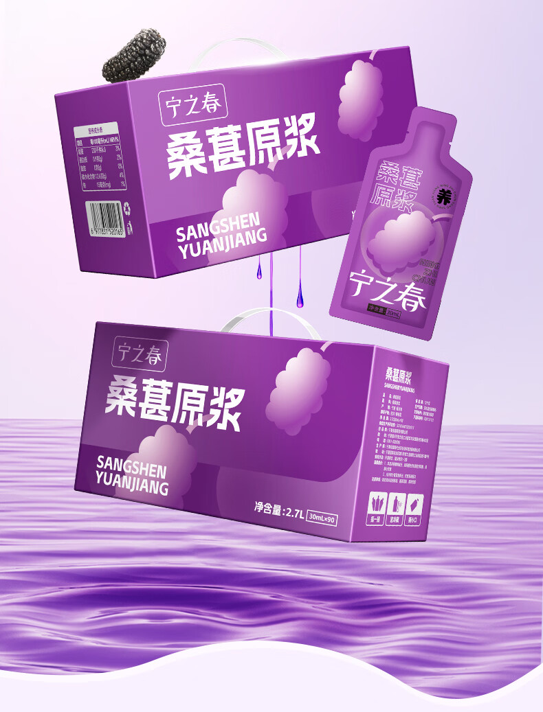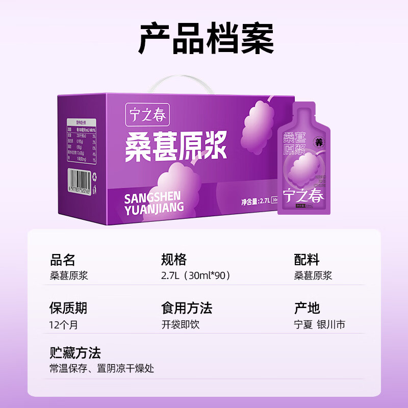 宁之春桑葚原浆2700ml礼盒精选大果鲜榨果汁不添加 节日礼品送长辈礼物 宁之春 桑葚原浆【礼盒装】 300ml*4盒
