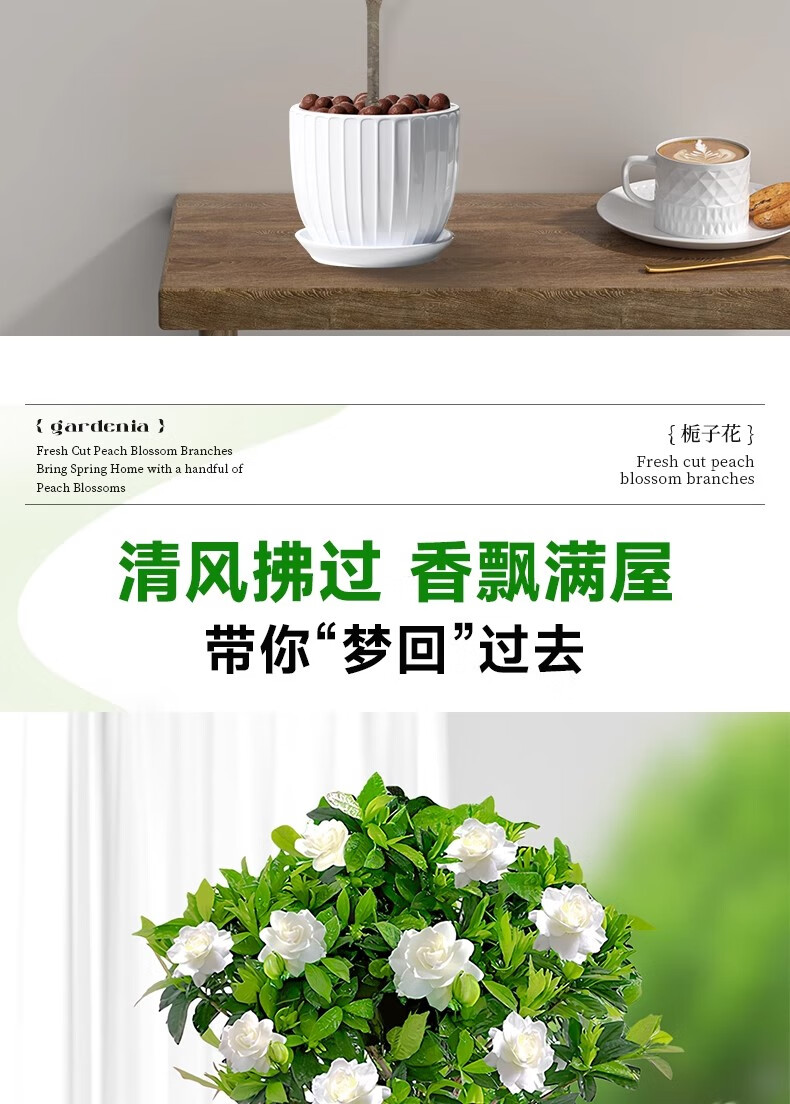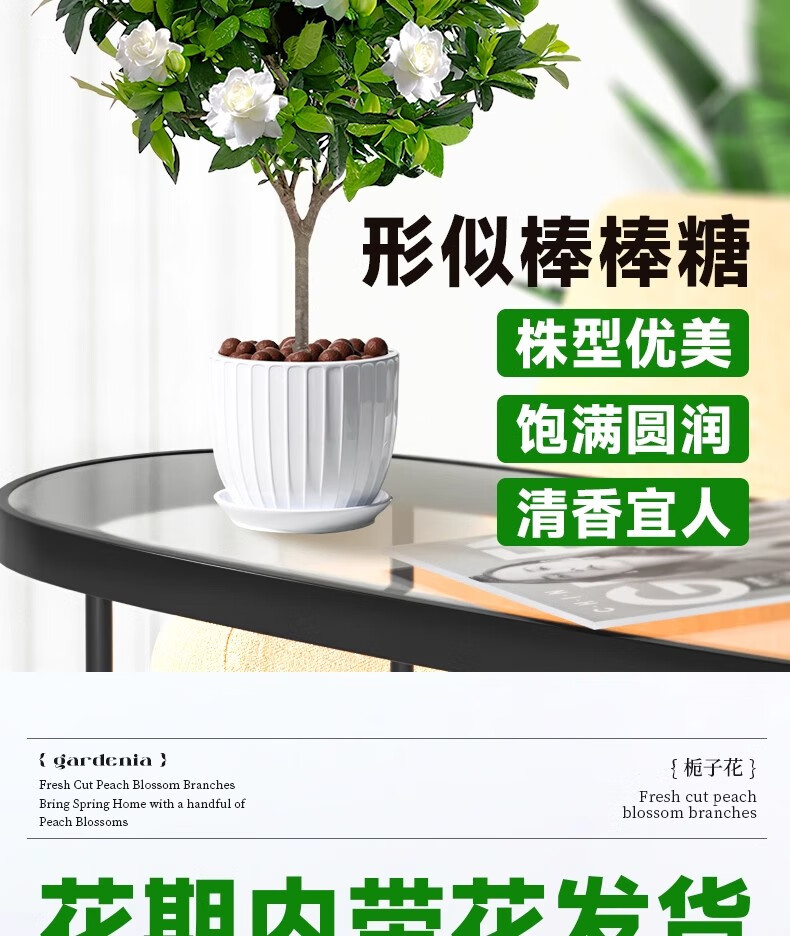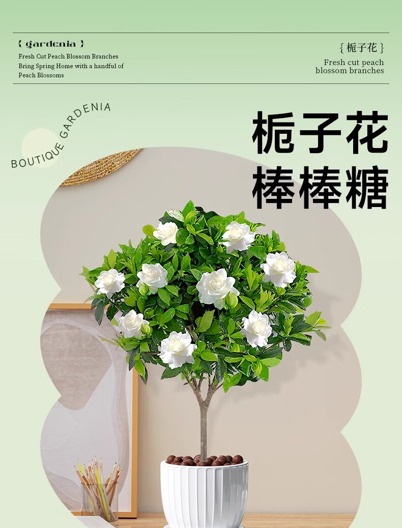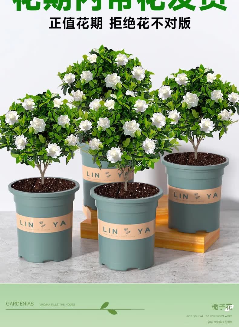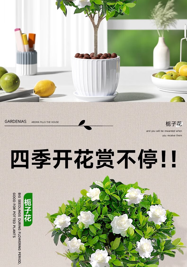 生活鲜花栀子花阳台盆栽带花苞大叶老桩浓香牡丹带花发货卉植物1 丛生栀子花【90#小盆】+简易盆