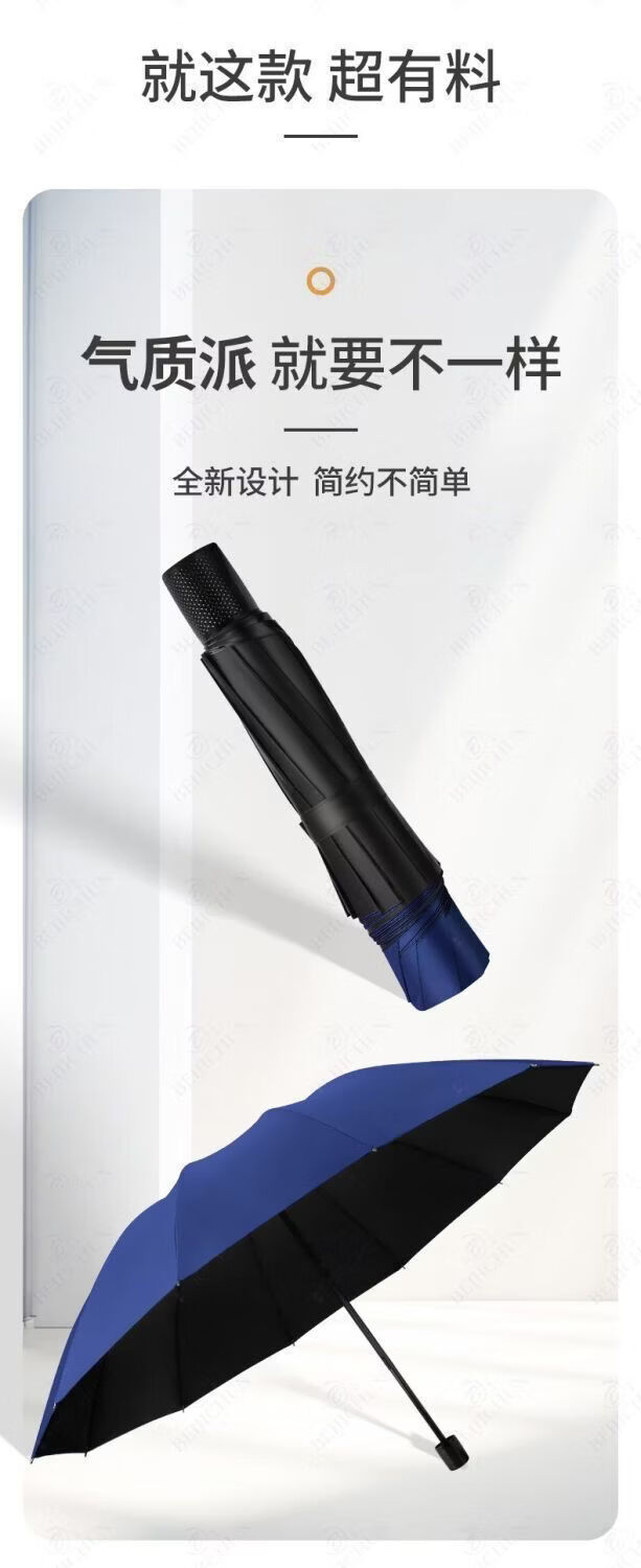 丘溯雨伞加厚专用折叠晴雨男士防晒遮阳伞手动上学两用超大加固工艺伞 藏青色