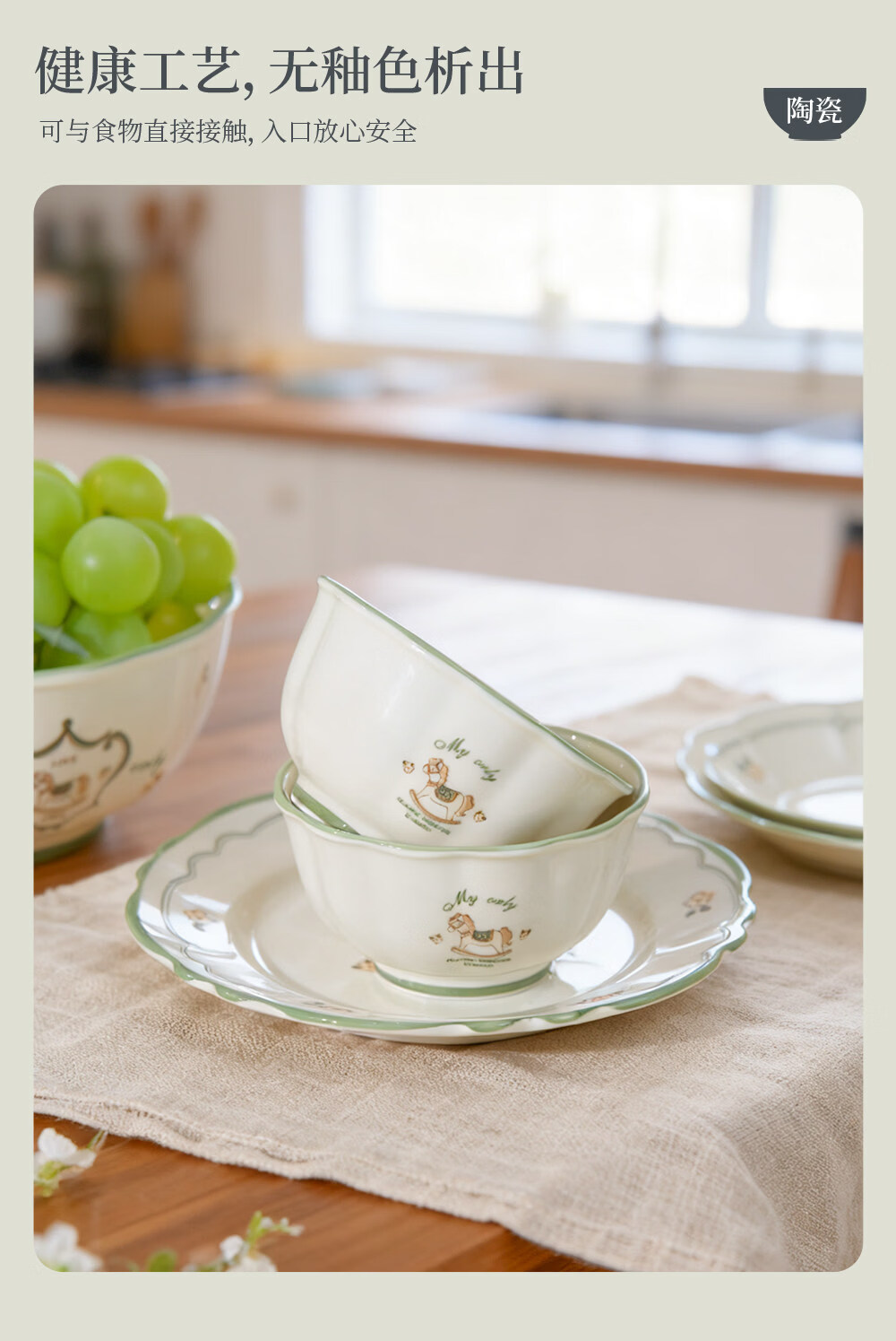 ARST雅誠德马年新款釉下彩陶瓷餐具碗盘家用组合高颜值卡通可爱乔迁送礼饭碗 4碗2盘