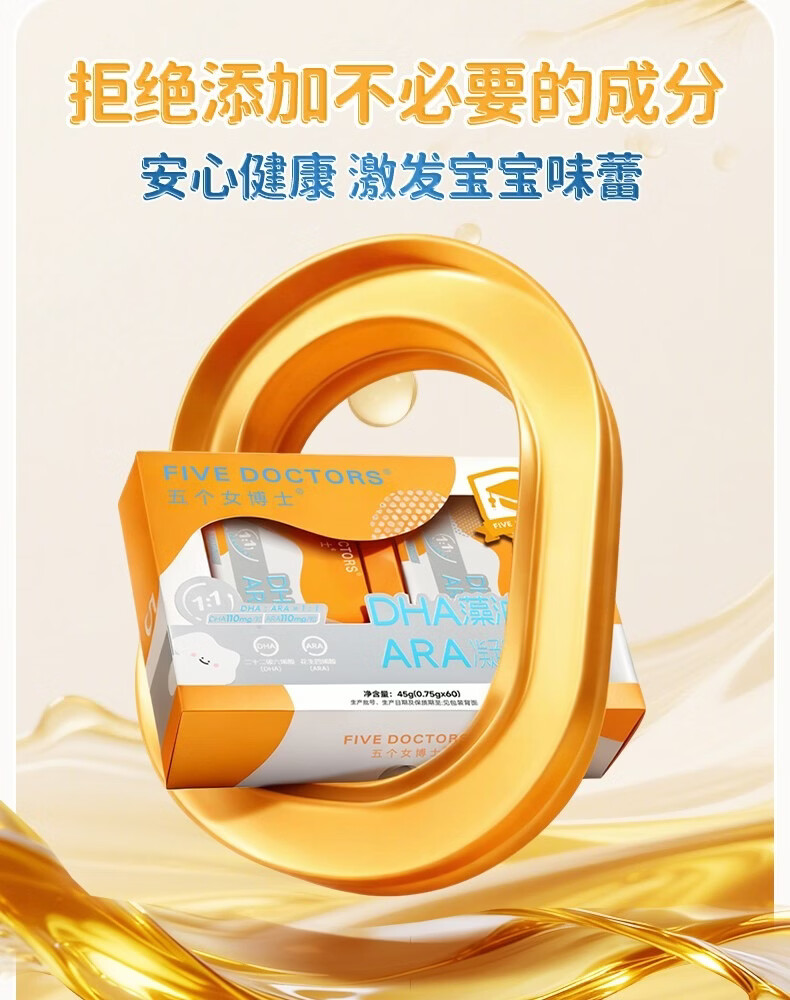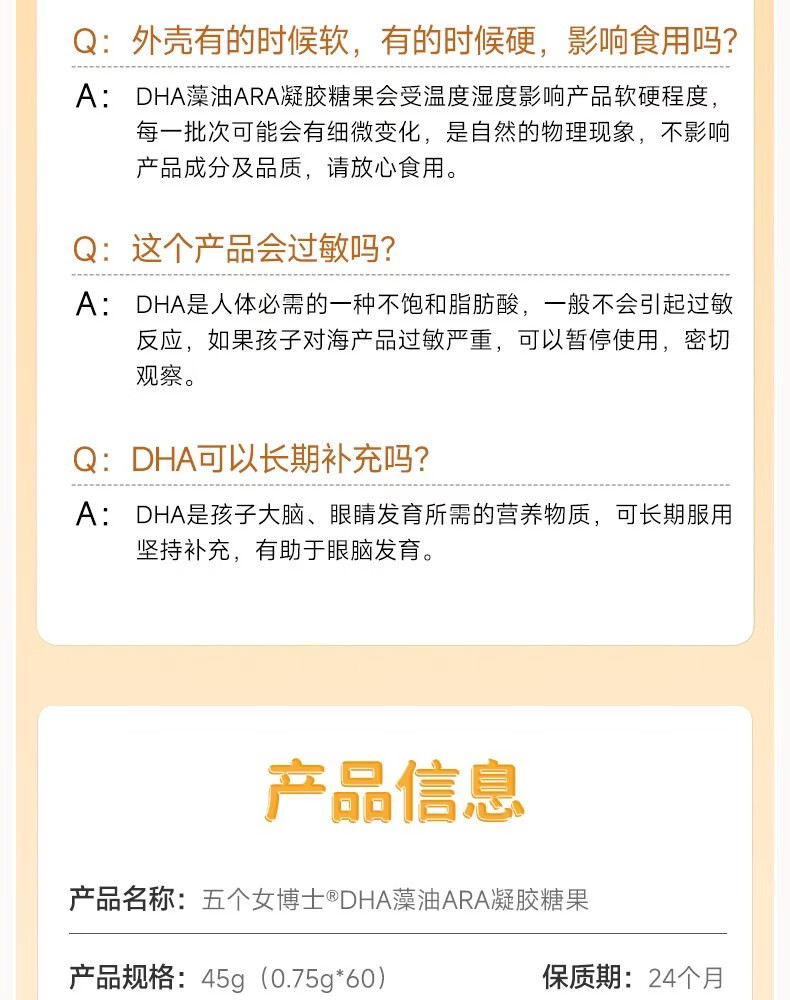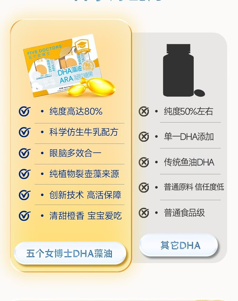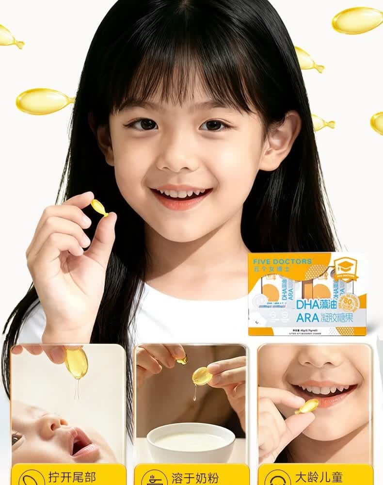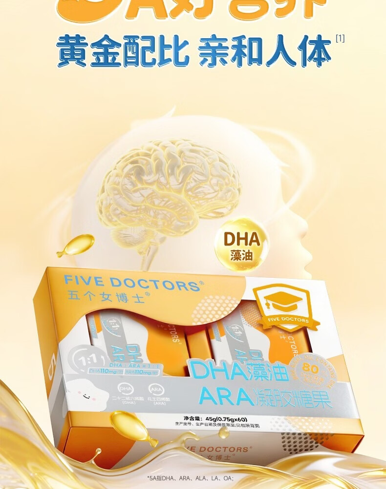 五个女博士(FIVEDOCTORS)DHA藻油ARA凝胶糖果 儿童宝宝 学生 青少年营养 60粒*盒