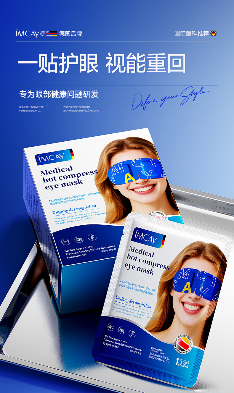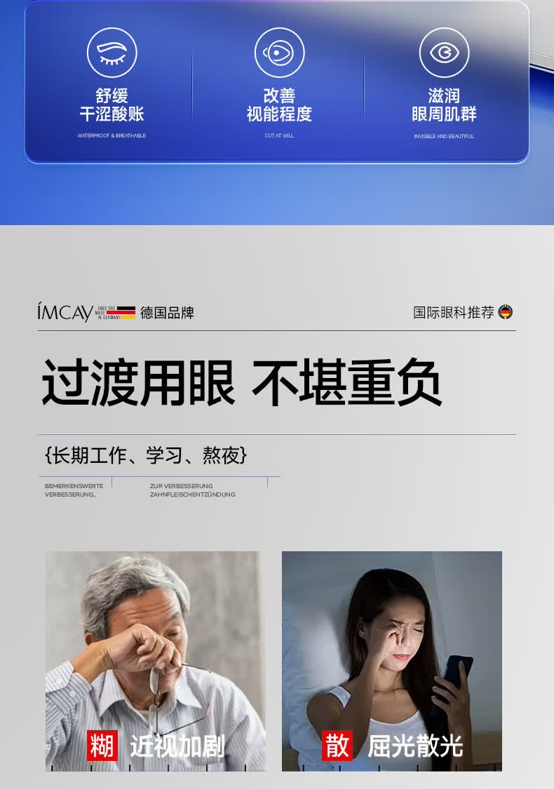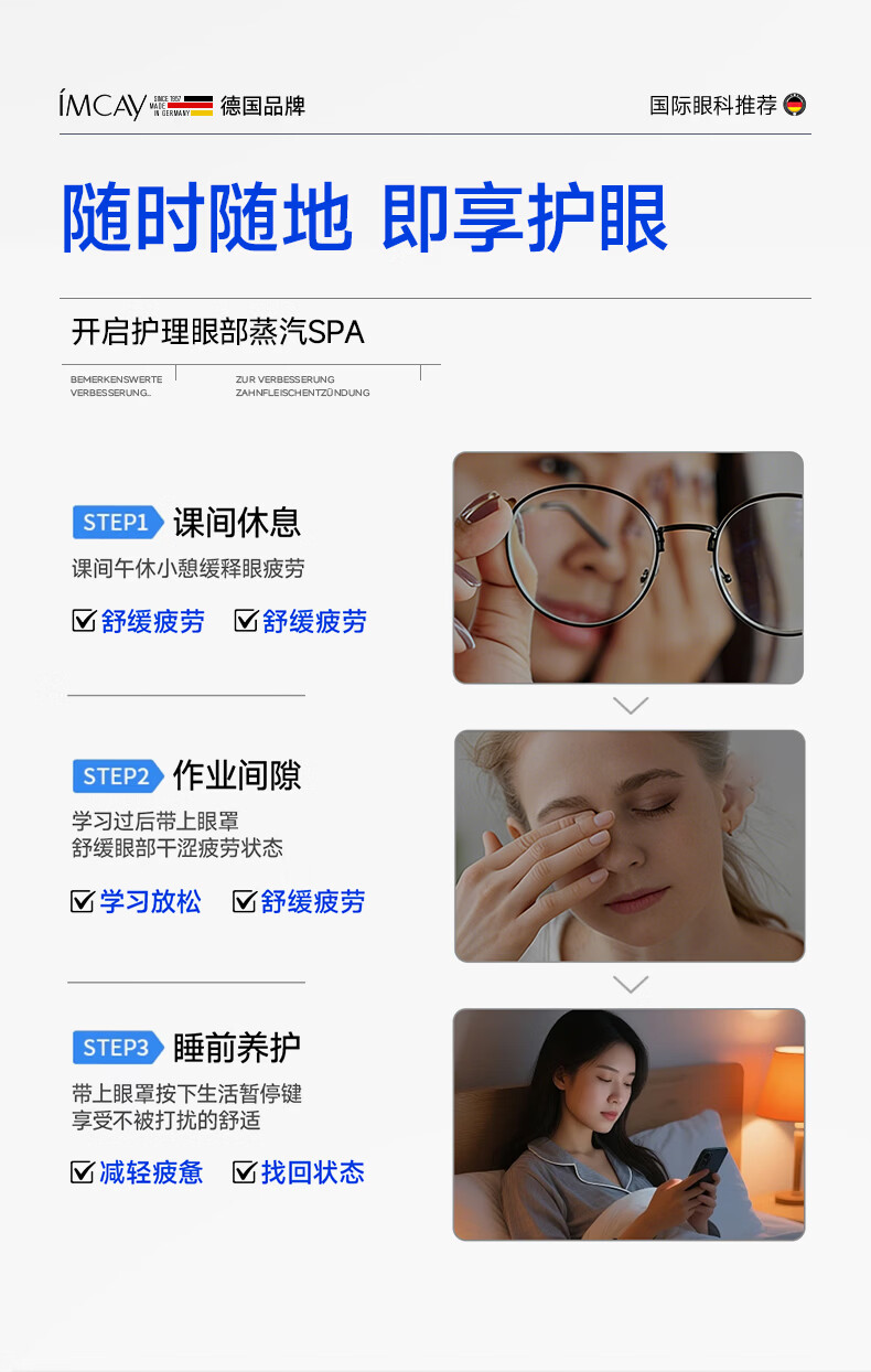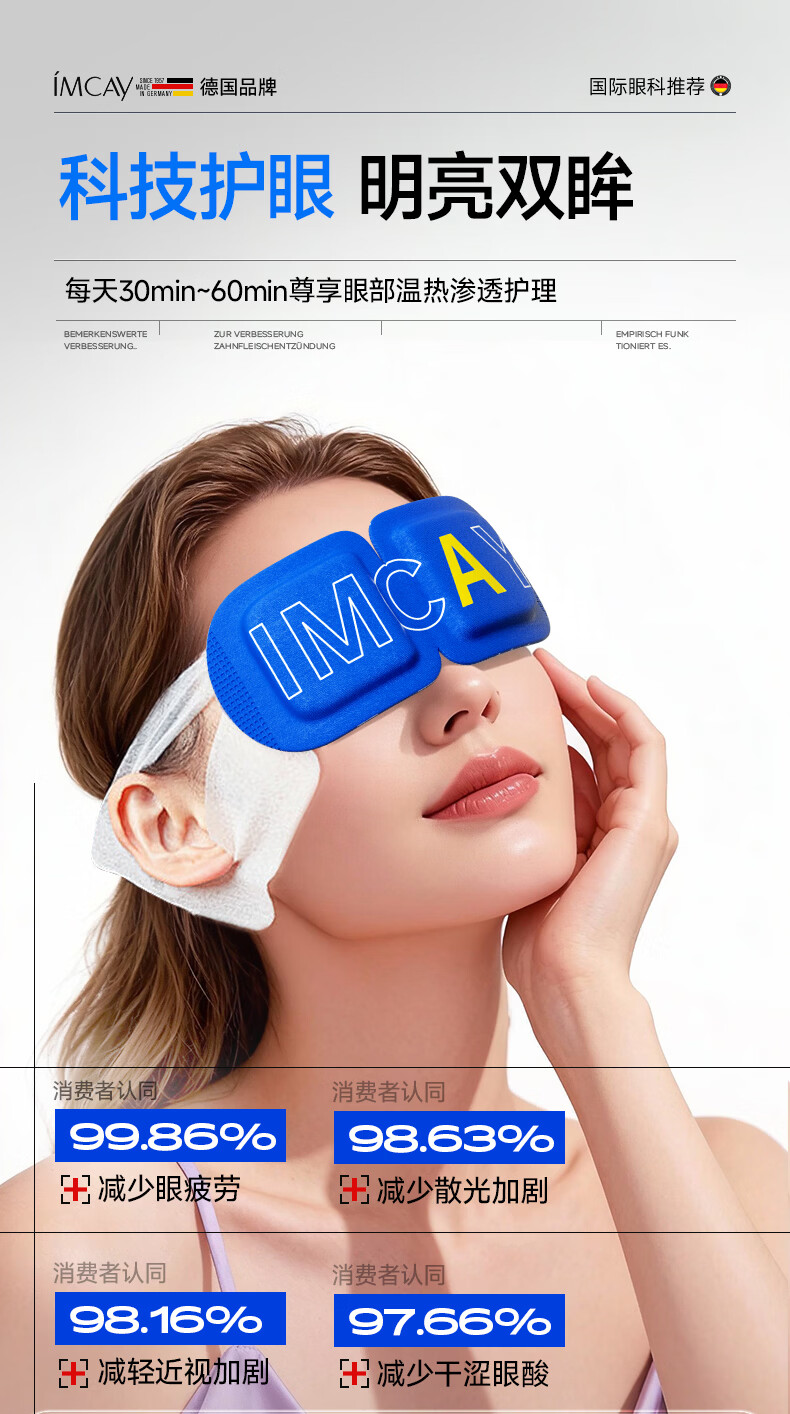 IMCAY蒸汽眼罩热敷干眼症视力疲劳疲劳眼干眼涩视力模糊眼贴改善视力 5盒【用眼过度专用】深度护理