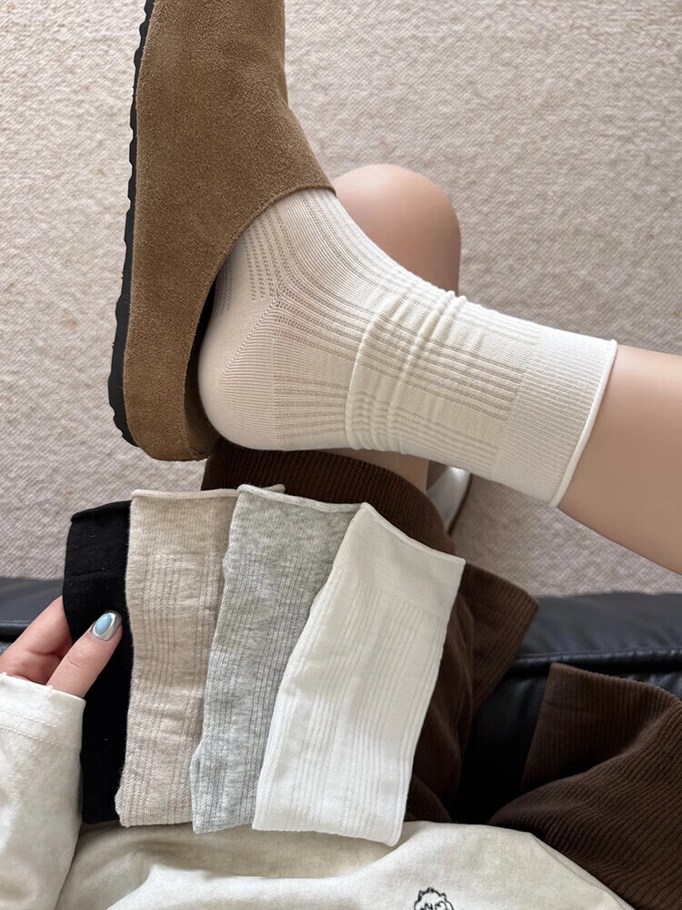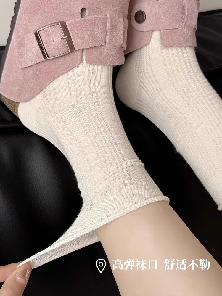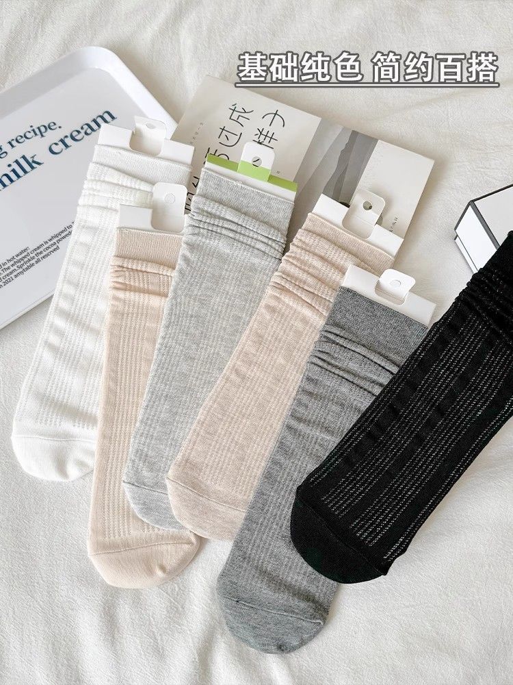 无骨袜子女夏季薄款纯色中筒袜镂空卷边透气2026新款芭蕾风堆堆袜 两双随机 请亲备注 2双 均码 【极致抗起球】