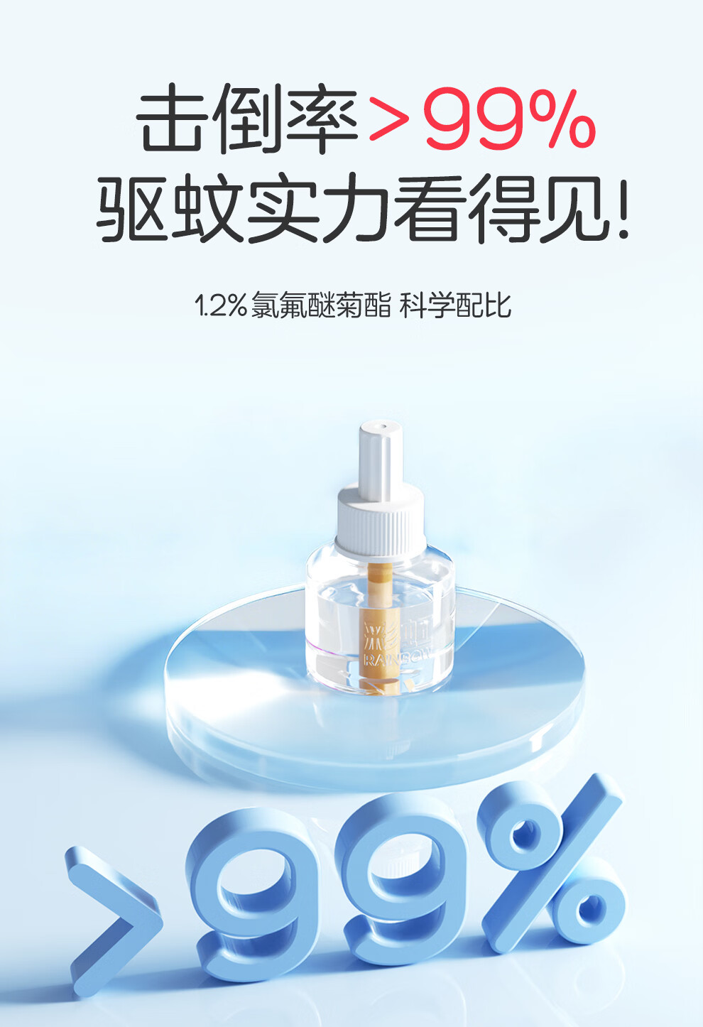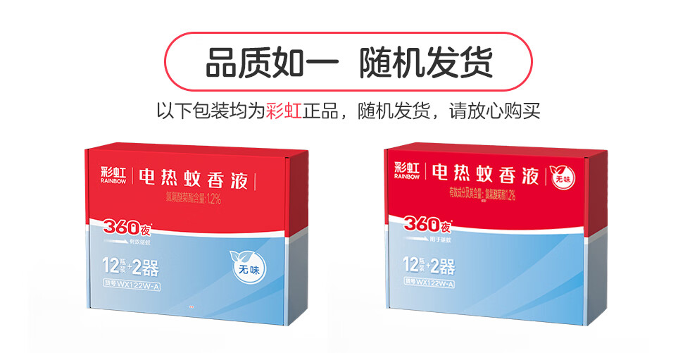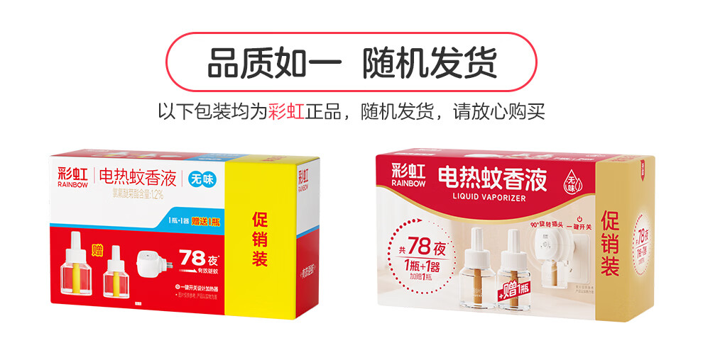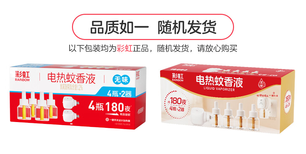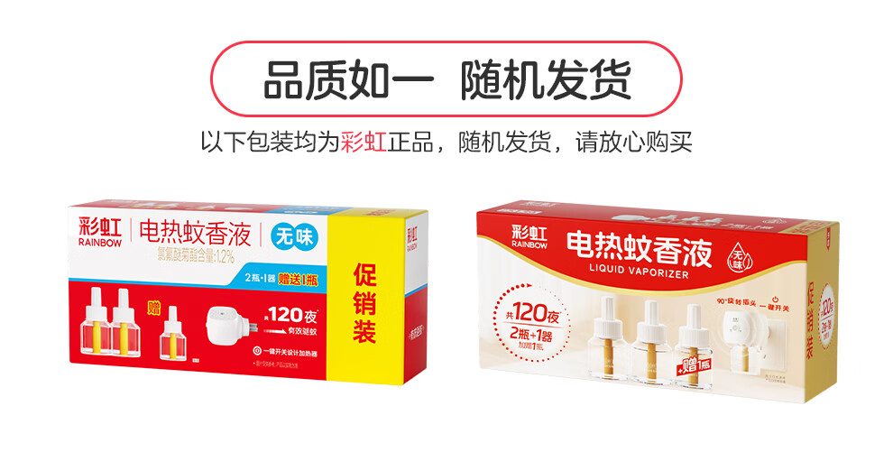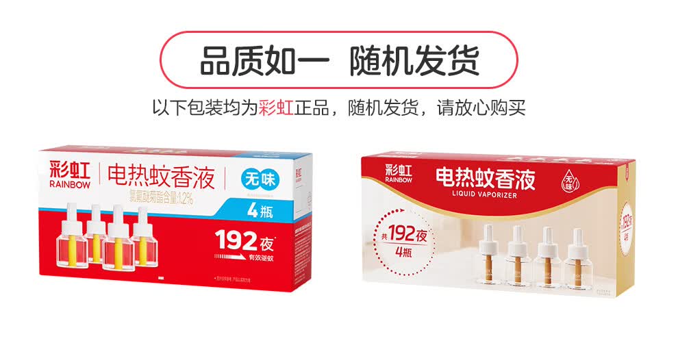 彩虹(RAINBOW)电蚊香液家用补充装灭蚊液无味防蚊液防蚊水蚊香器驱蚊器包装随机 4瓶液+1加热器(180夜)WQ41W-45-A
