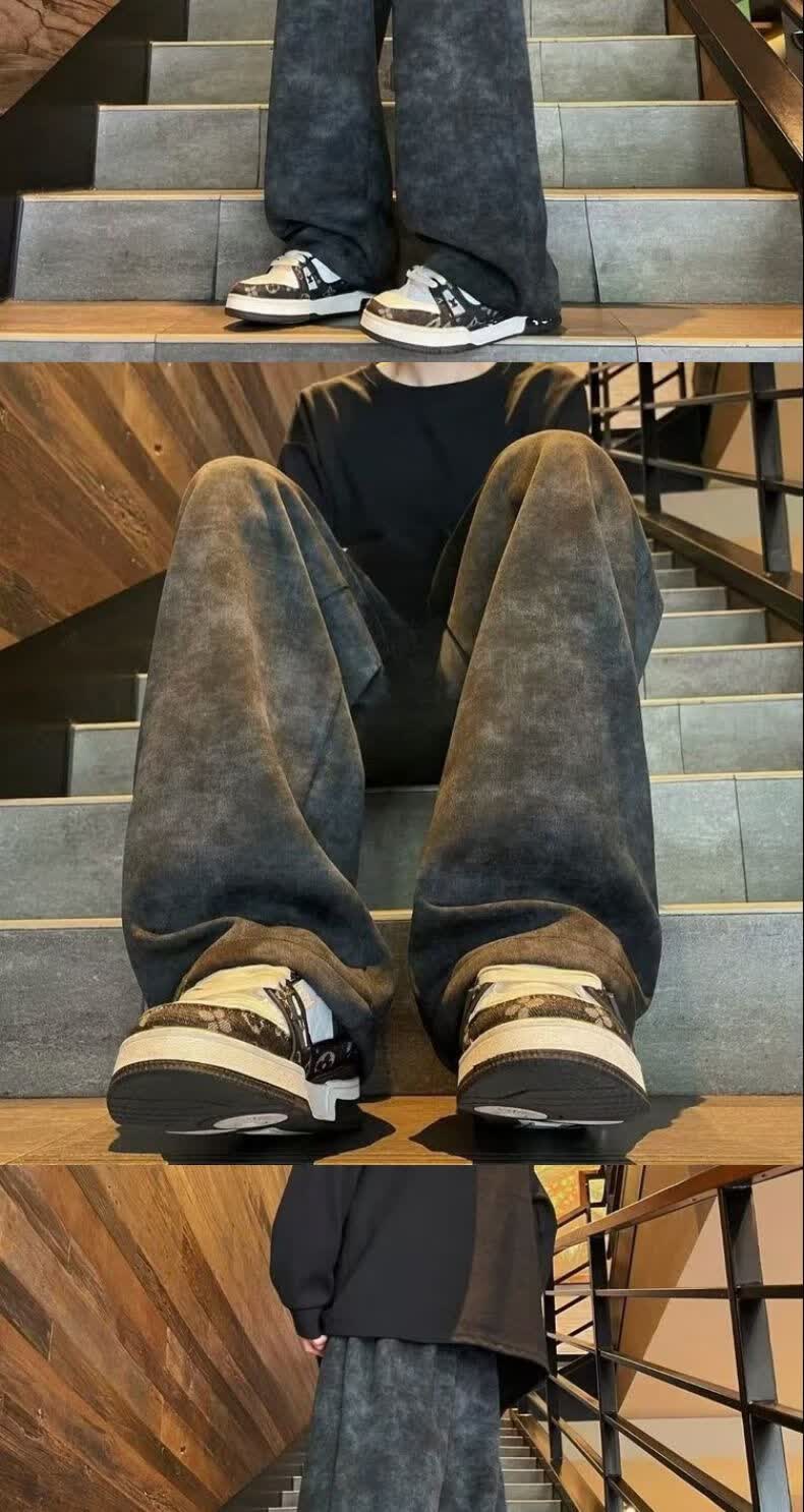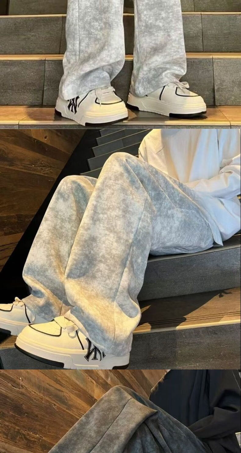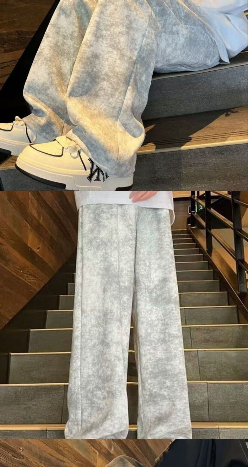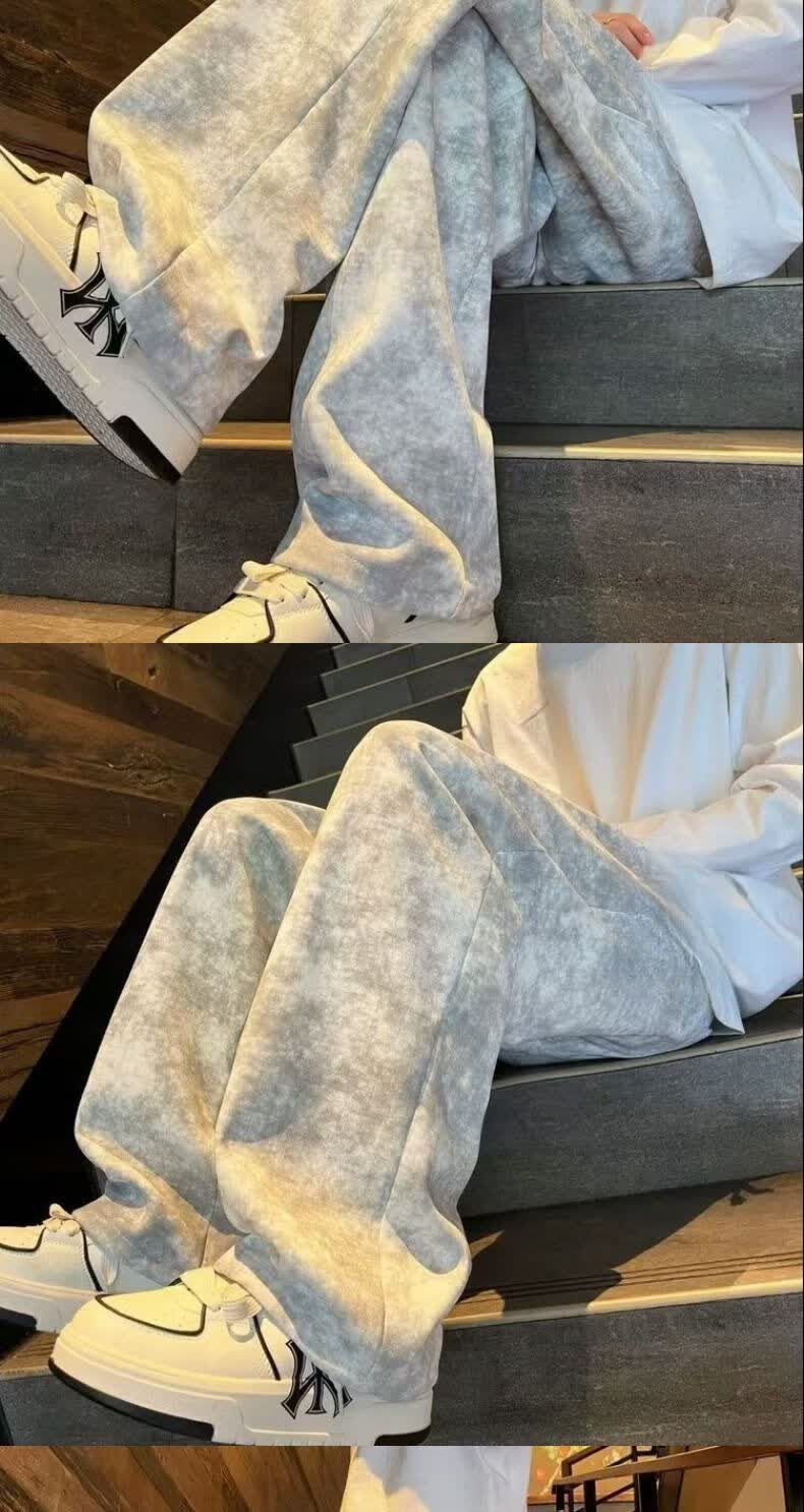 东馨鸟扎染休闲新款休闲裤美式春秋复古薄款宽松长裤直筒潮流脏脏裤裤子 黑色 5XL[建议200-220斤] 均码
