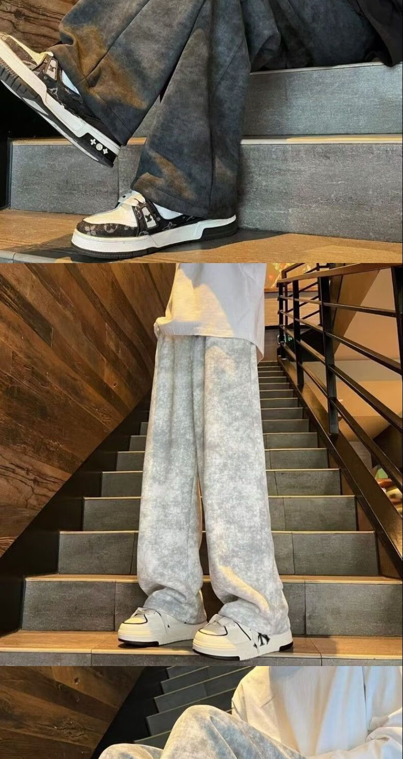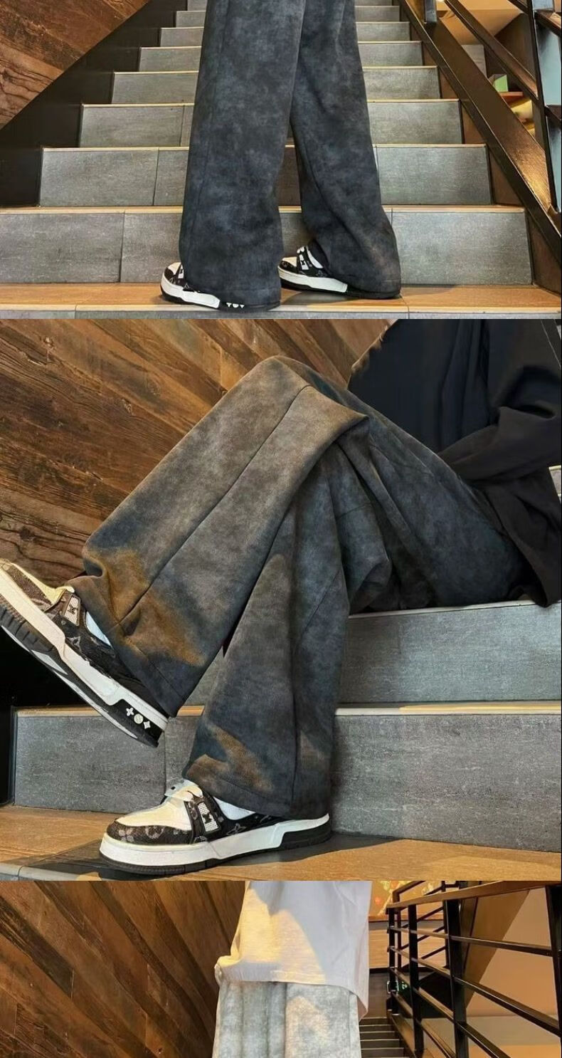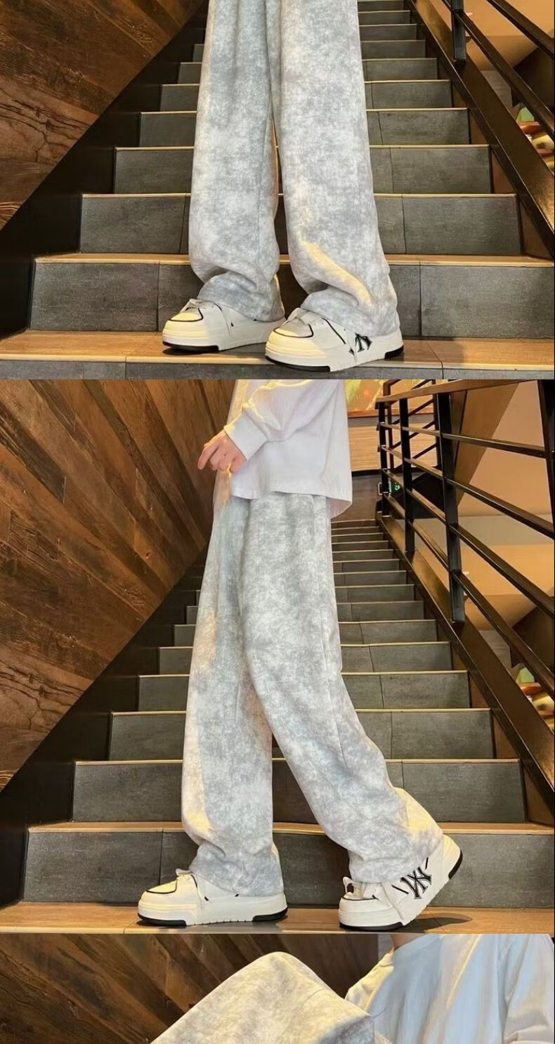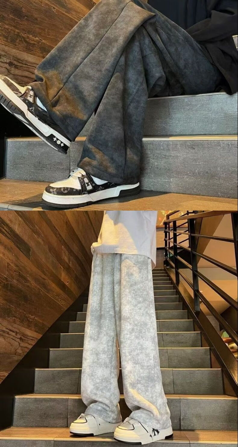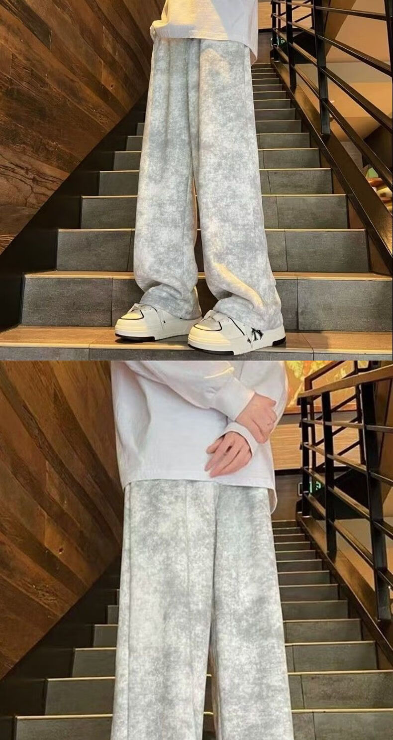 东馨鸟扎染休闲新款休闲裤美式春秋复古薄款宽松长裤直筒潮流脏脏裤裤子 黑色 5XL[建议200-220斤] 均码