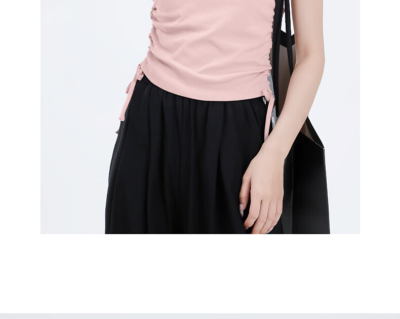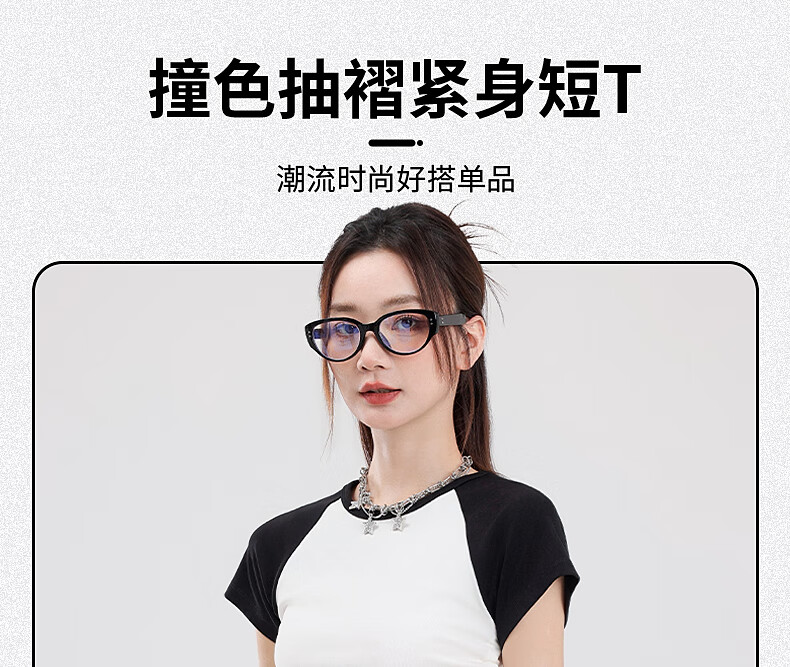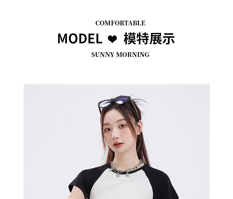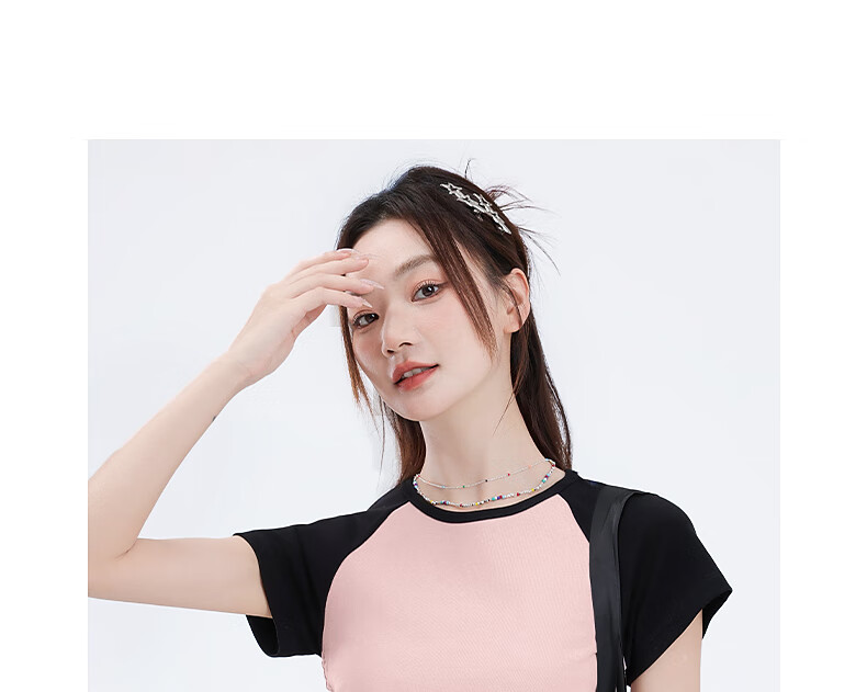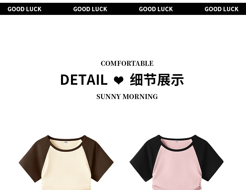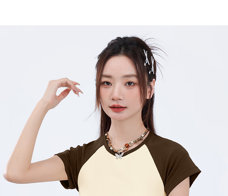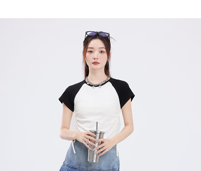 真维斯撞色抽褶紧身短款短袖t恤女夏季新款时尚休闲校园风半袖GX 麻灰-纯色 M