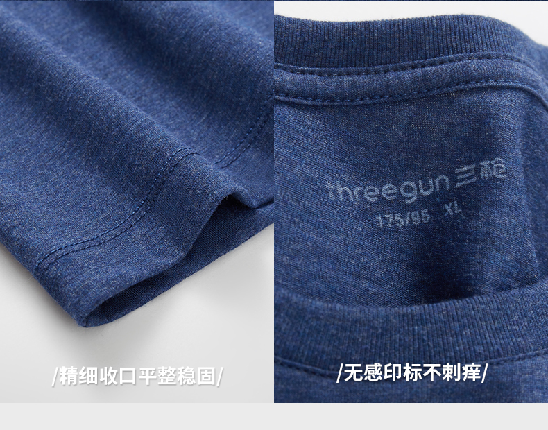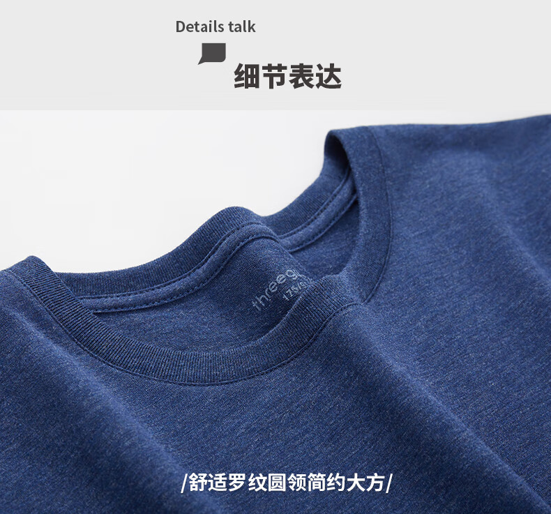 三枪男士夏季宽松型纯棉薄款圆领短袖休闲外穿中青年T恤衫半袖文化衫 夜空蓝 3XL (185/105)