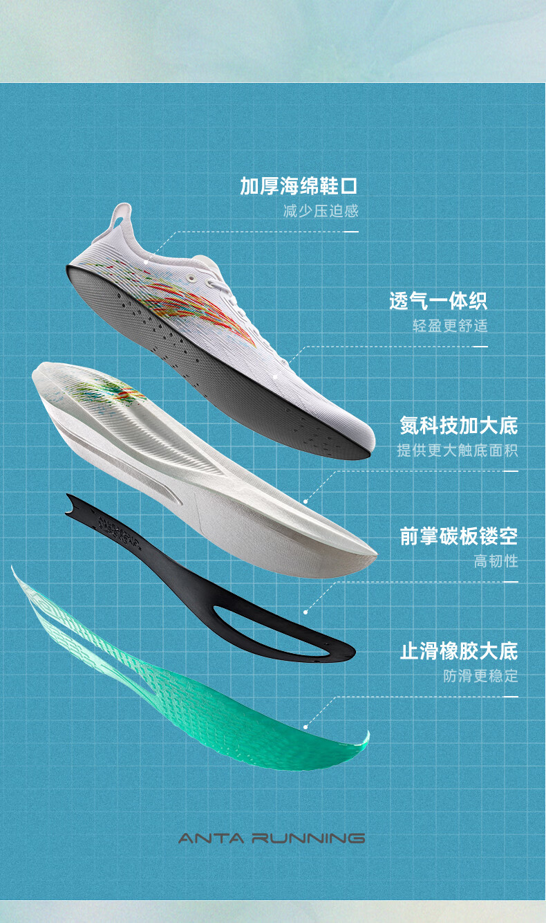 安踏马赫5代丨氮科技运动鞋女子中考体考专业跑步鞋竞训跑鞋122525583 淡暮蓝/纸莎白-3 37.5 (女6.5)