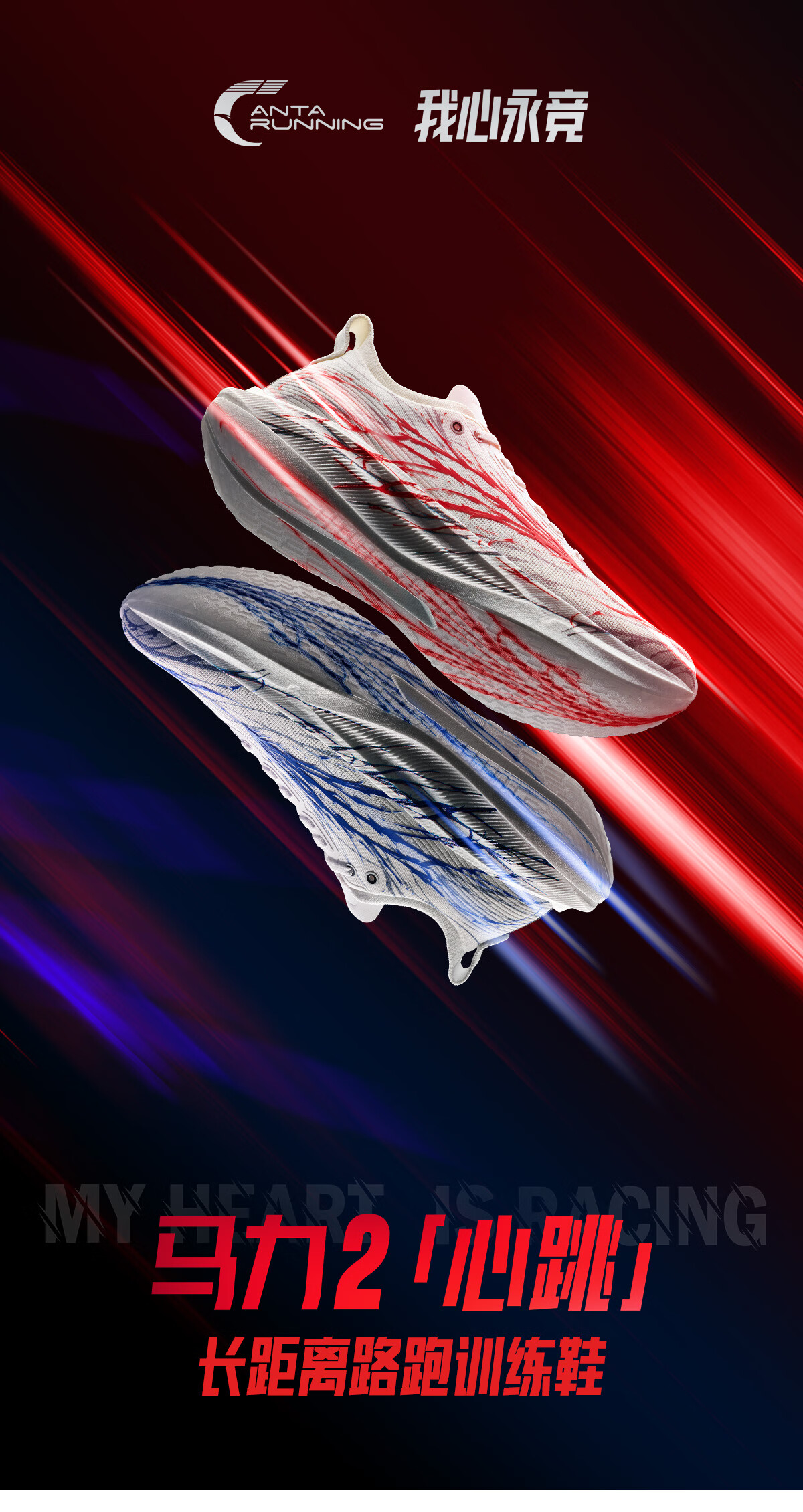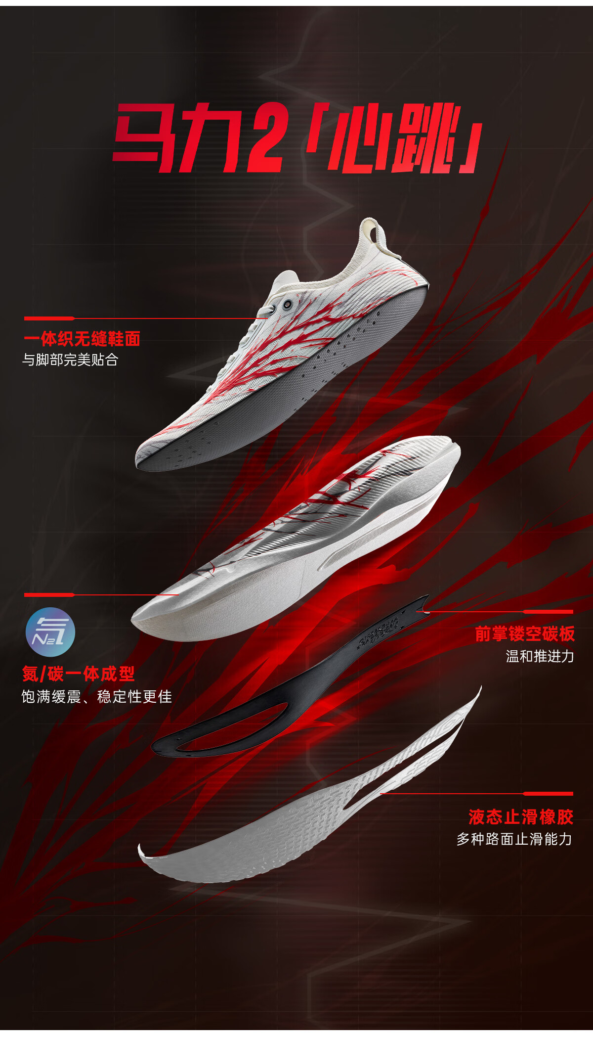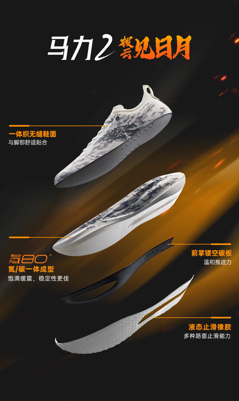 安踏马力2红心跳丨长距离马拉松碳板竞速跑步鞋男子缓震运动鞋