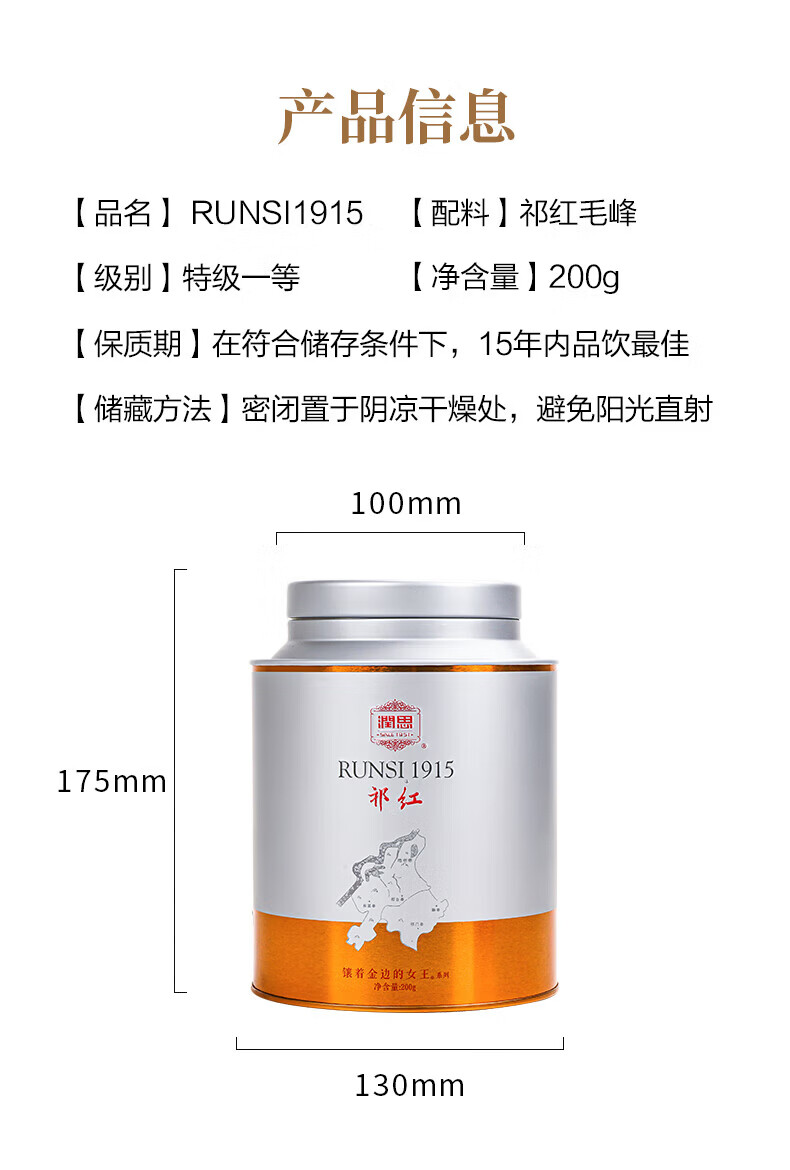 润思祁门红茶官方旗舰店1915特级口粮茶新茶中华老字号茶叶送长辈父母 祁红香螺200g 1915系列(特级一等)