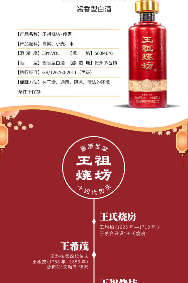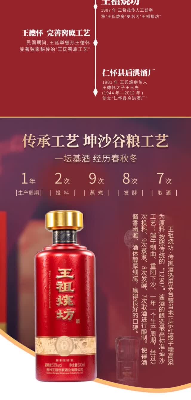 王祖燒坊【传家】53°酱香型白酒大曲坤沙工艺贵州茅酒纯粮陈酿 高端礼盒 53%vol 500mL 6瓶