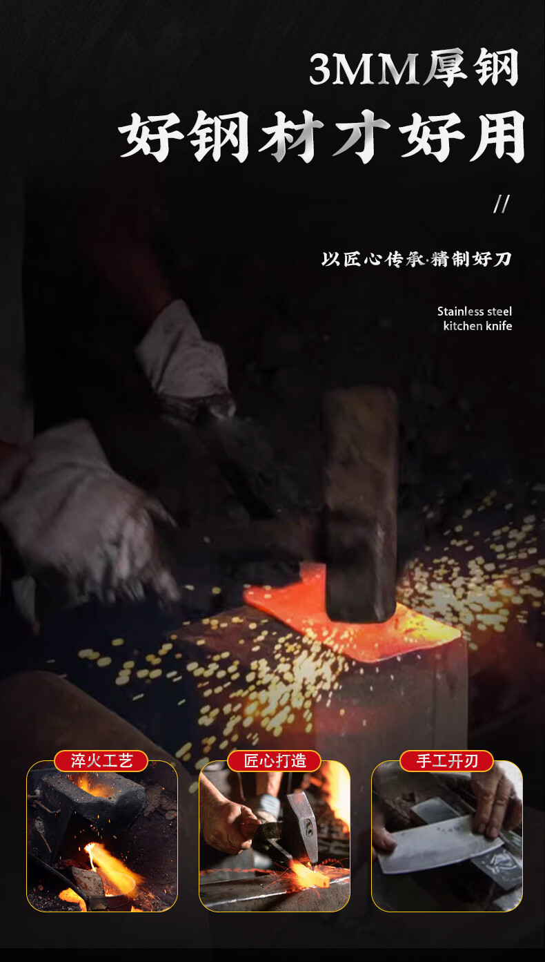 张小泉 三层复合钢菜刀家用切片刀菜刀桑刀2#切菜刀