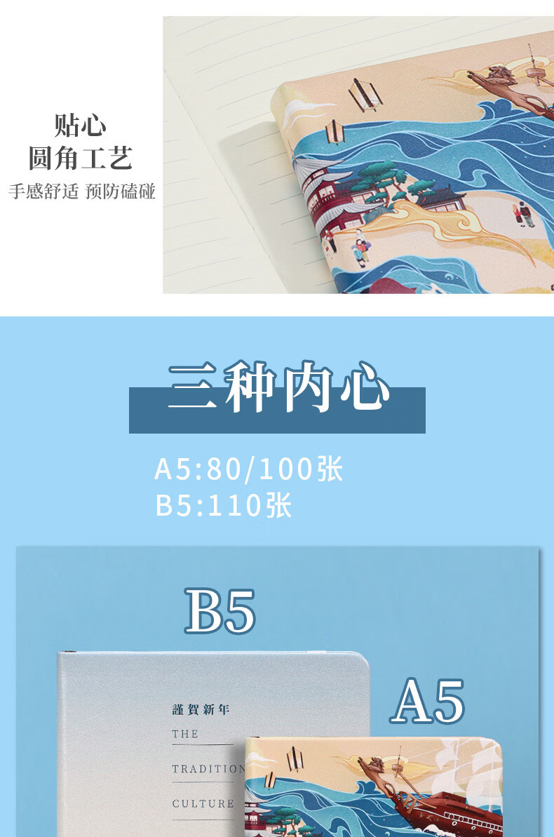 创意笔记本定制国潮文创精装手账本记事本个人来图本子博物馆联名 B5-硬皮款【内芯110张220页】