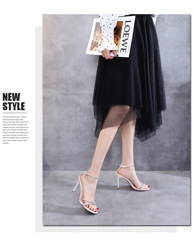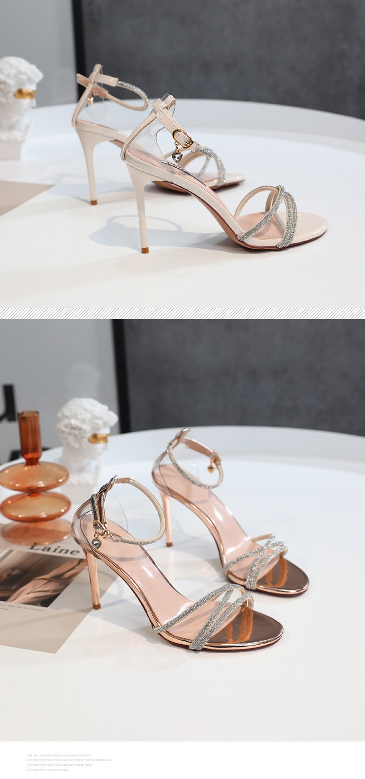 Moermashi高跟凉鞋女夏季新款气质仙女风水钻法式一字带细跟性感高跟鞋 杏色 37 (偏小拍大1码)