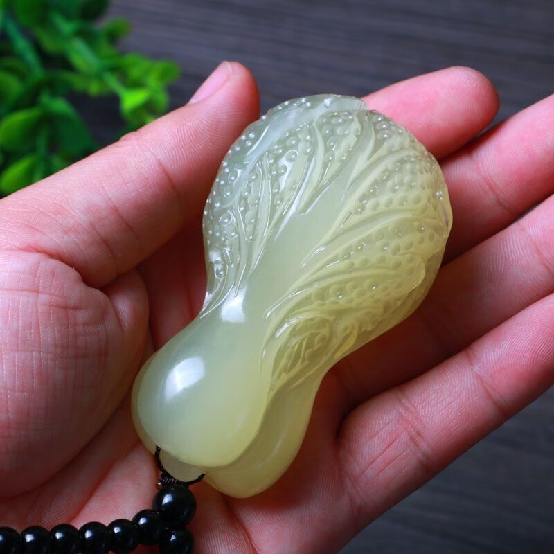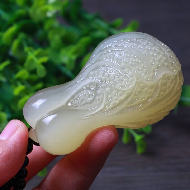 春龙冰种玉石白菜手把件 男女款玉石手玩件方解石玉附证书 把件长5.5厘米左右