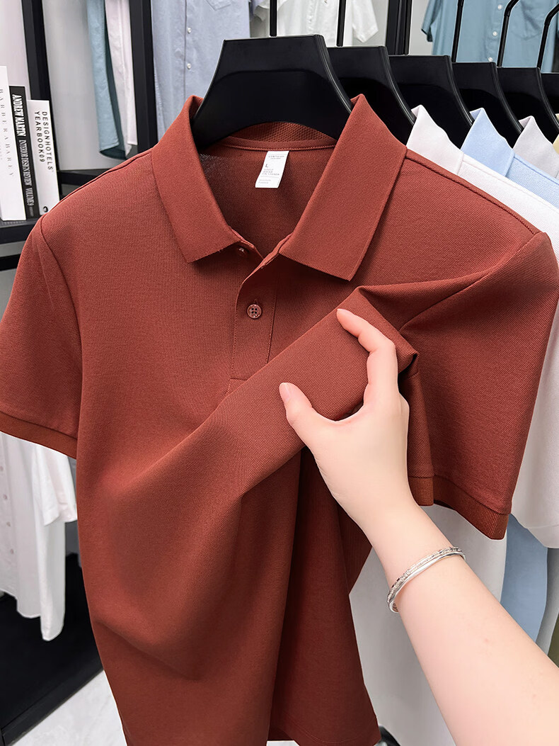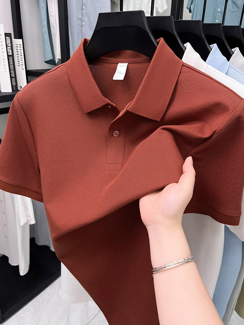 九牧王(JOEONE)夏短袖翻领POLO衫男2026新款中青年商务休闲透气丝光棉T恤 桔红色 XL