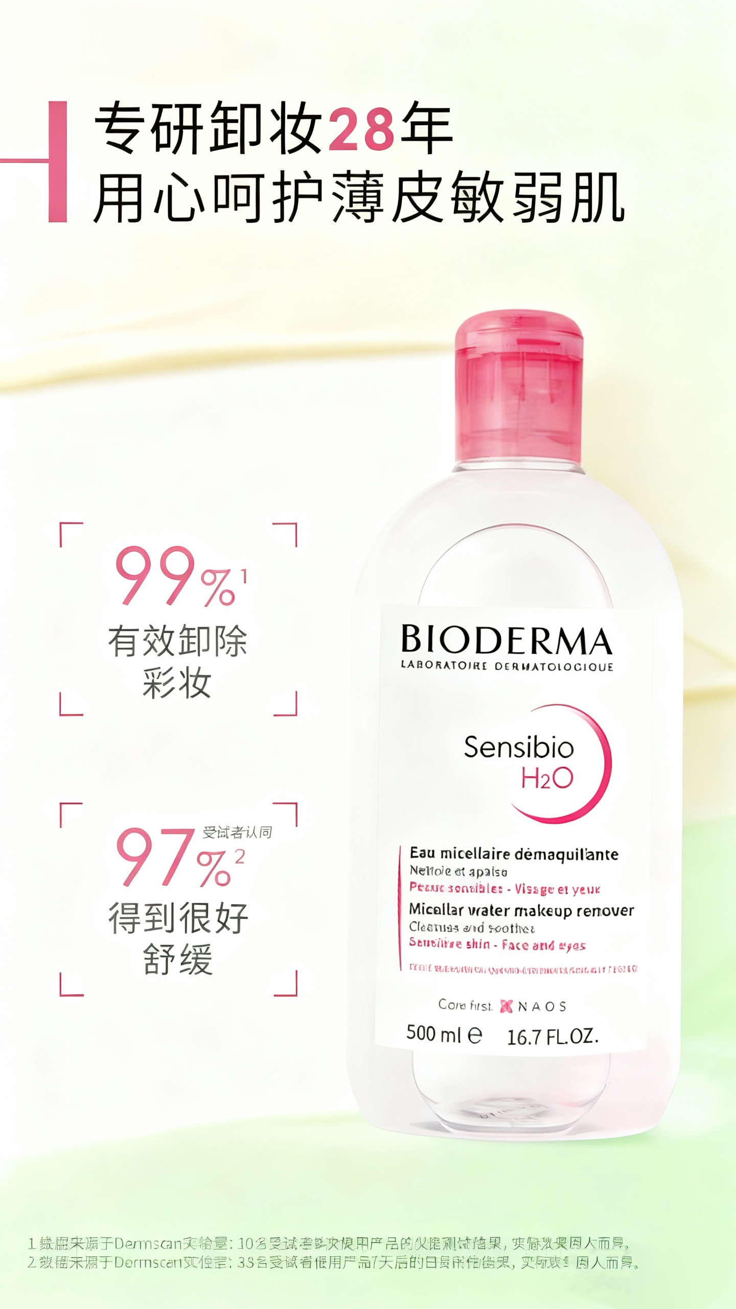 法国原装进口卸妆水粉水温和不刺激眼唇脸合一防伪 &敏感肌适用 贝德玛蓝水500ml