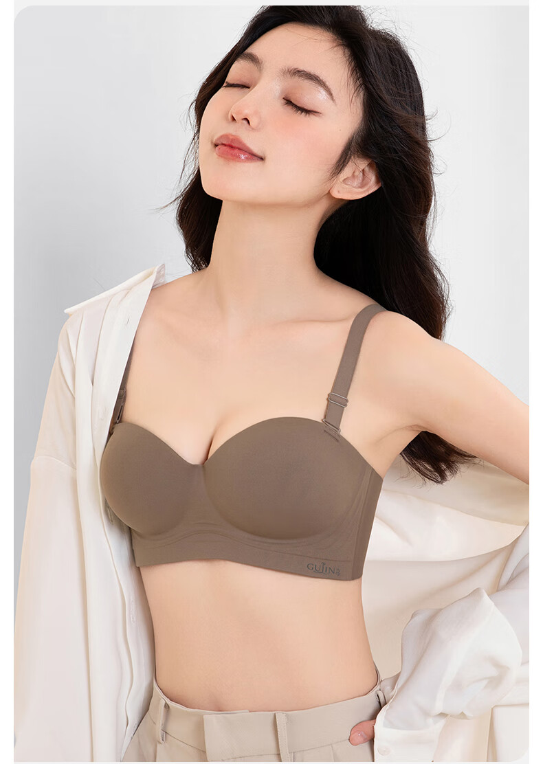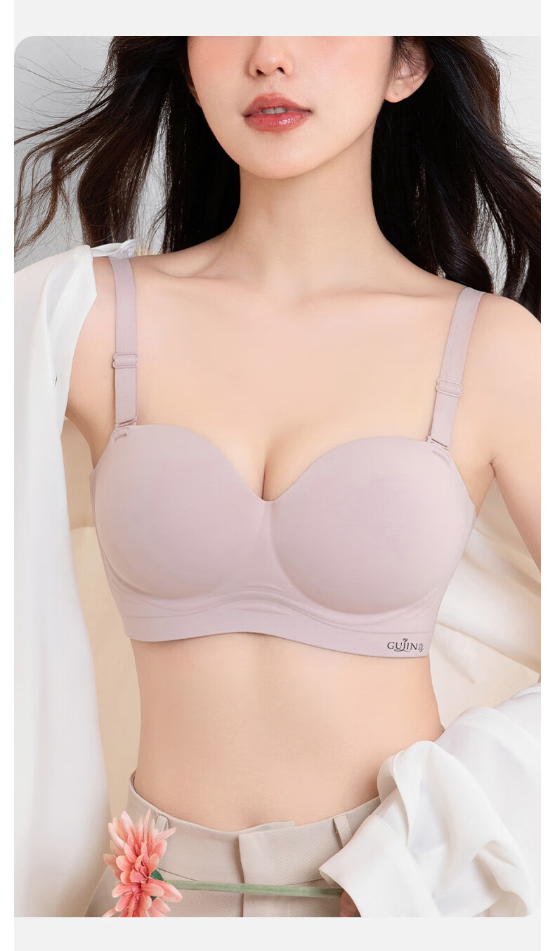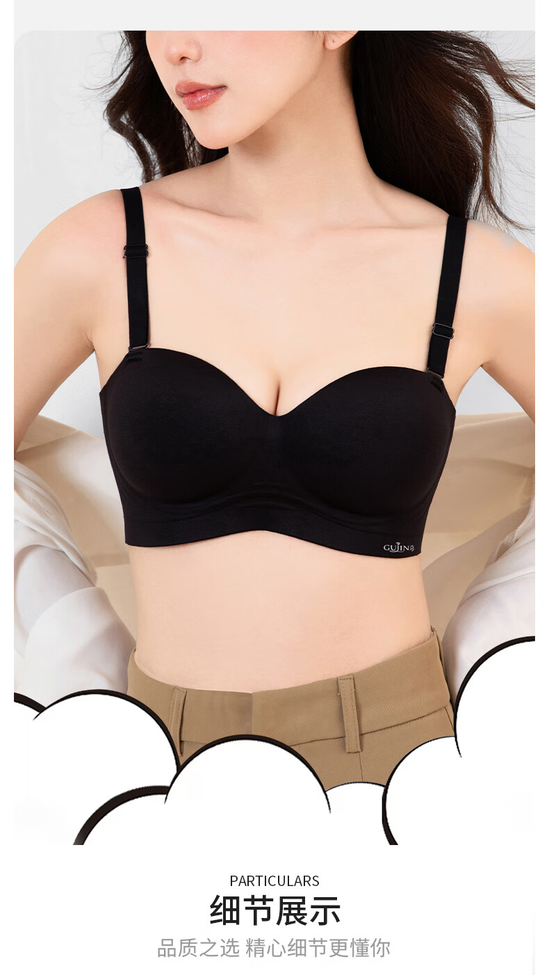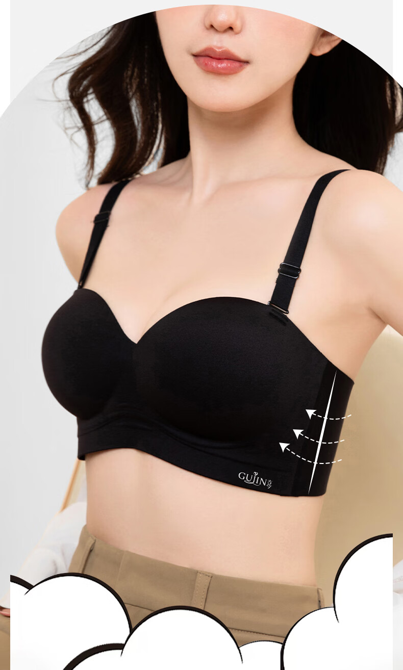 古今内衣女士无肩带文胸罩无钢圈无痕薄款抹胸聚拢上托美背小胸显大 黑色 (升杯感强)建议拍大一码 80A
