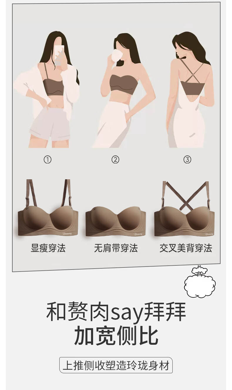 菇娘家胸贴隐形文胸无痕防滑防走光小胸聚拢芒果乳贴吊带结婚无肩带内衣 裸感肤 80A /75B/70C