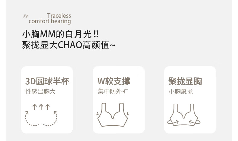 雨恋馨性感内衣女小胸聚拢上托调整型收副乳无钢圈舒适蕾丝文胸罩套装 奶油白套装 XL