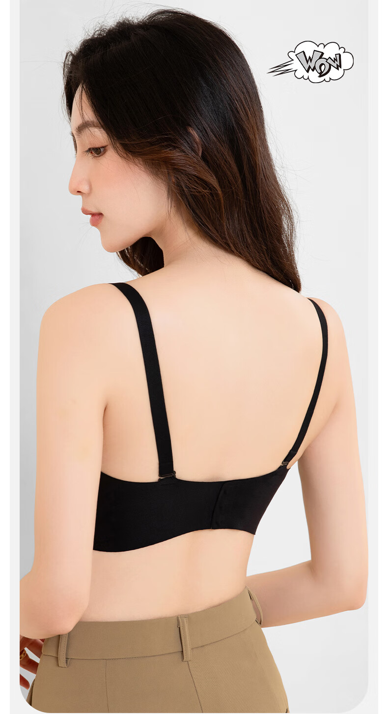 俞兆林无痕隐形美背内衣女小胸聚拢细肩带粉底液u型露背挂脖吊带文胸罩 WX8838 经典黑1件 L (36/80ABC 建议110-125斤)