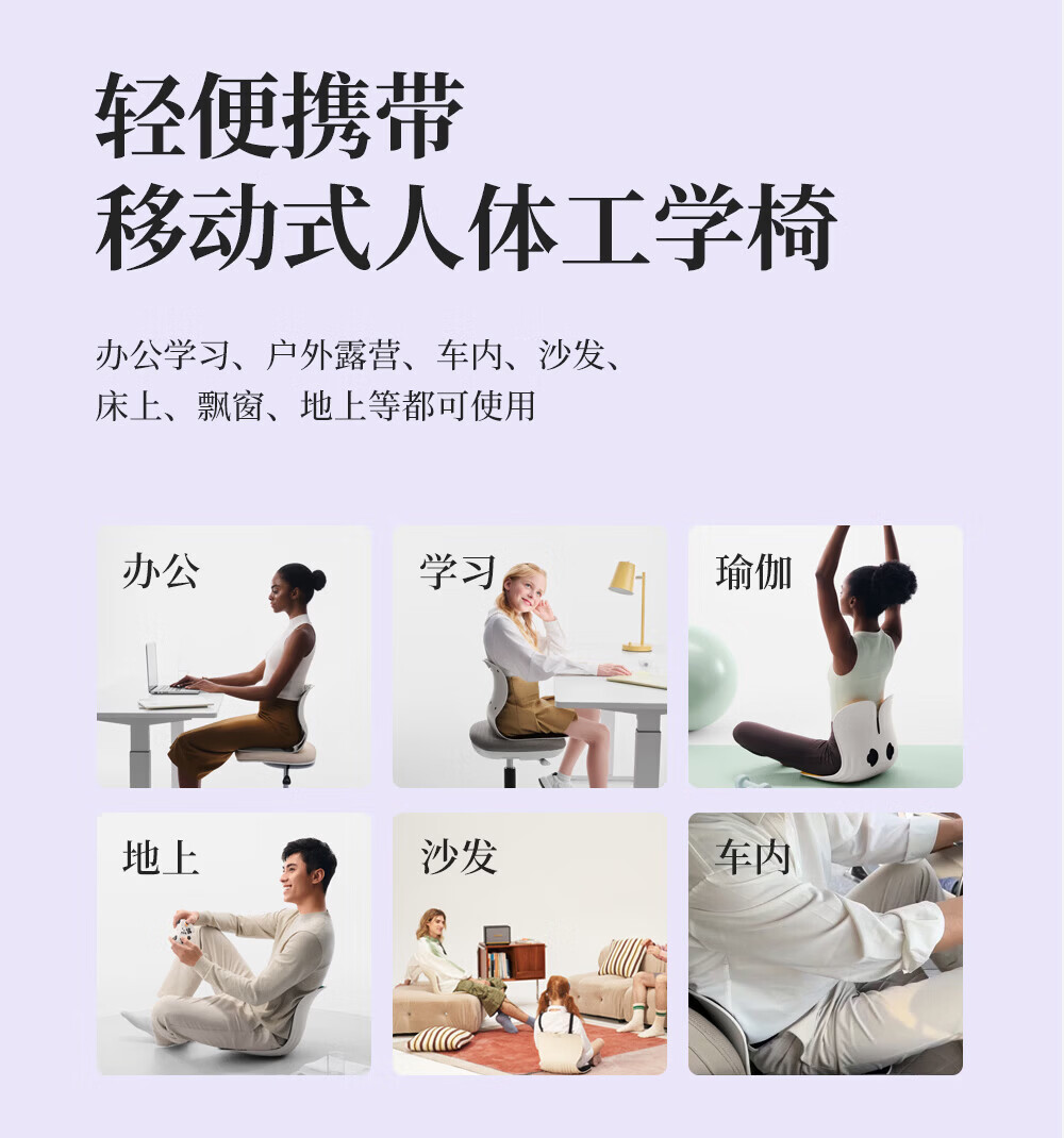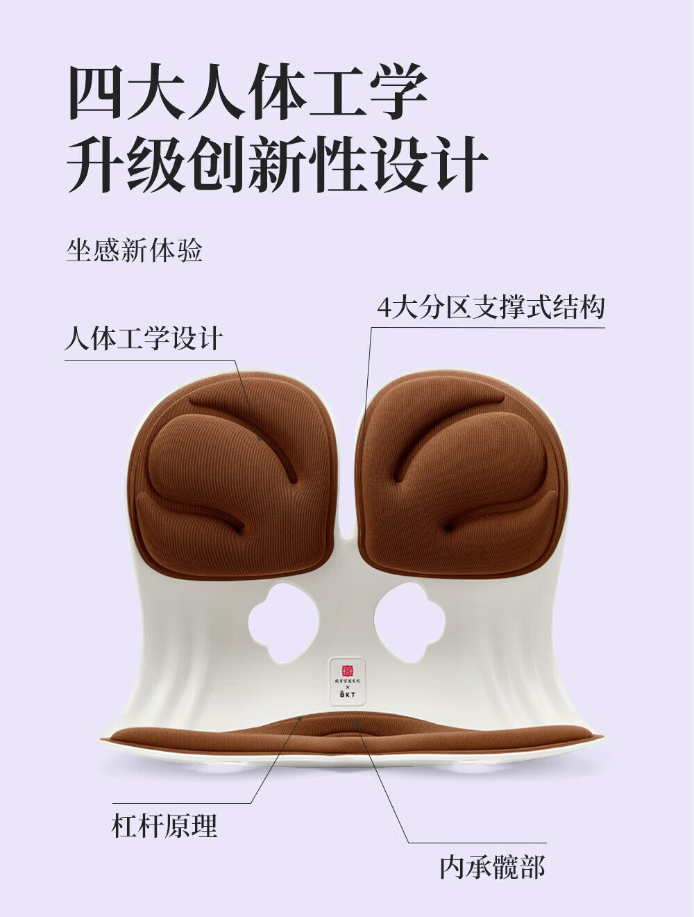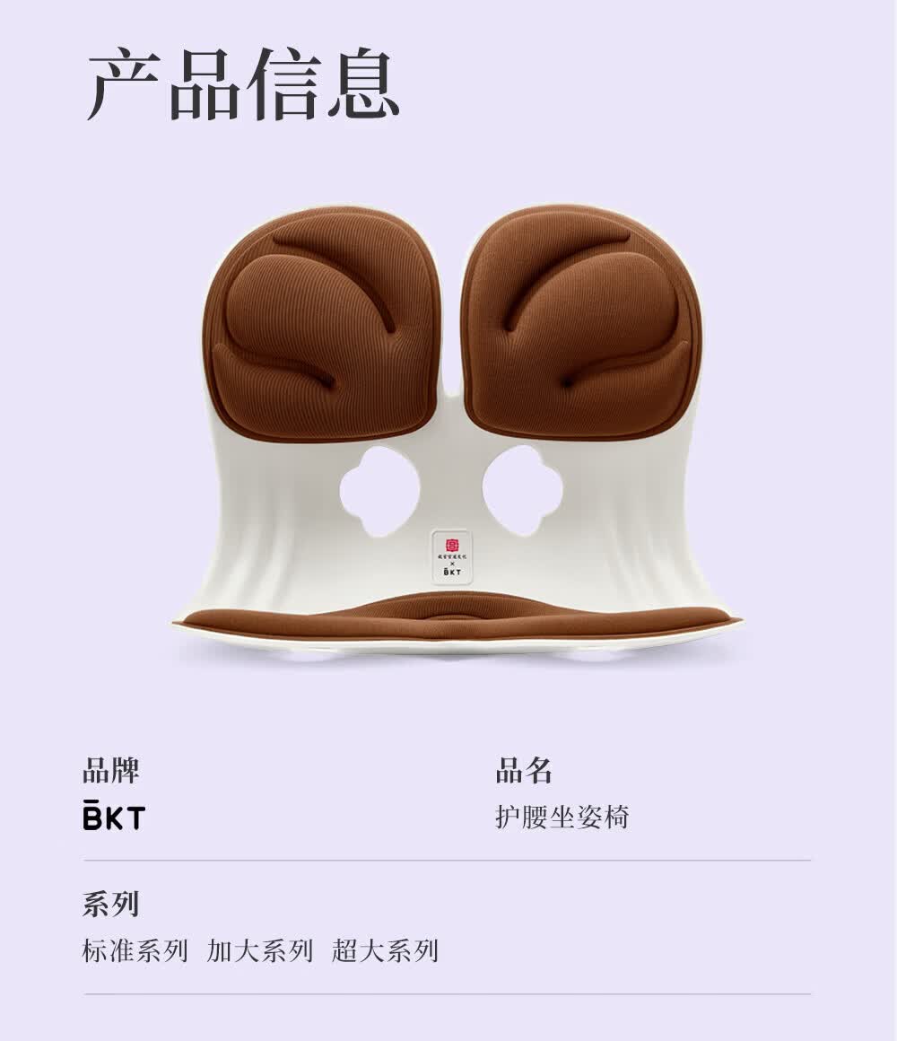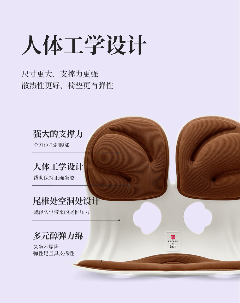 BKT 护腰坐垫椅办公室腰靠学生久坐神器坐姿垫靠腰垫子靠背老人小孩 美拉德色-加大版【推荐150以下适用】