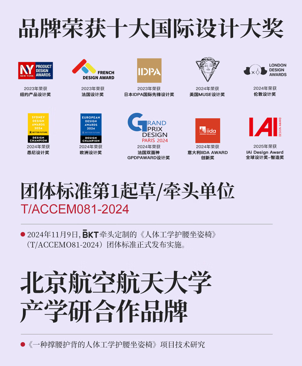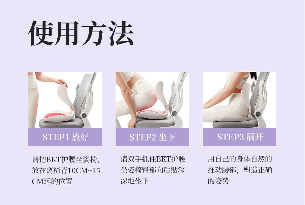 BKT护腰坐垫久神器靠背人体工学椅座姿托办公室部支撑官方旗舰店 加大版-气质灰【150斤以内适用】