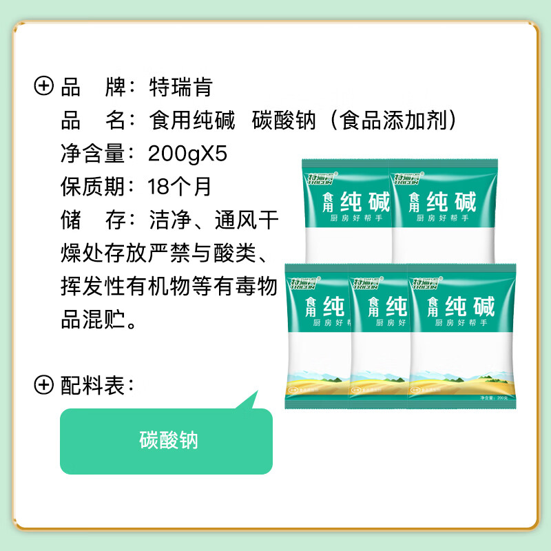 特瑞肯(TRICON)厨房食用纯碱200g*5袋烘焙发面饮品制作清洁祛污祛味调味品送礼