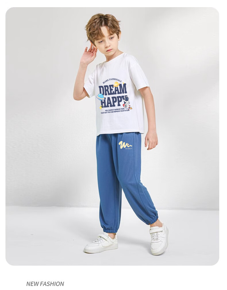 马克华菲男童套装夏季2025新款儿童纯棉短袖T恤冰丝防蚊裤女童夏装 m航天员白+m优秀加靛+m航天员K灰 110