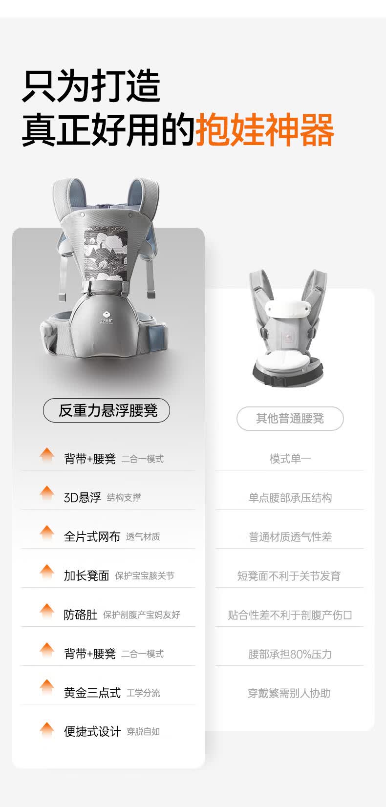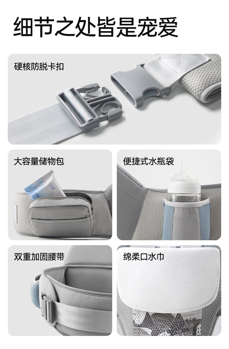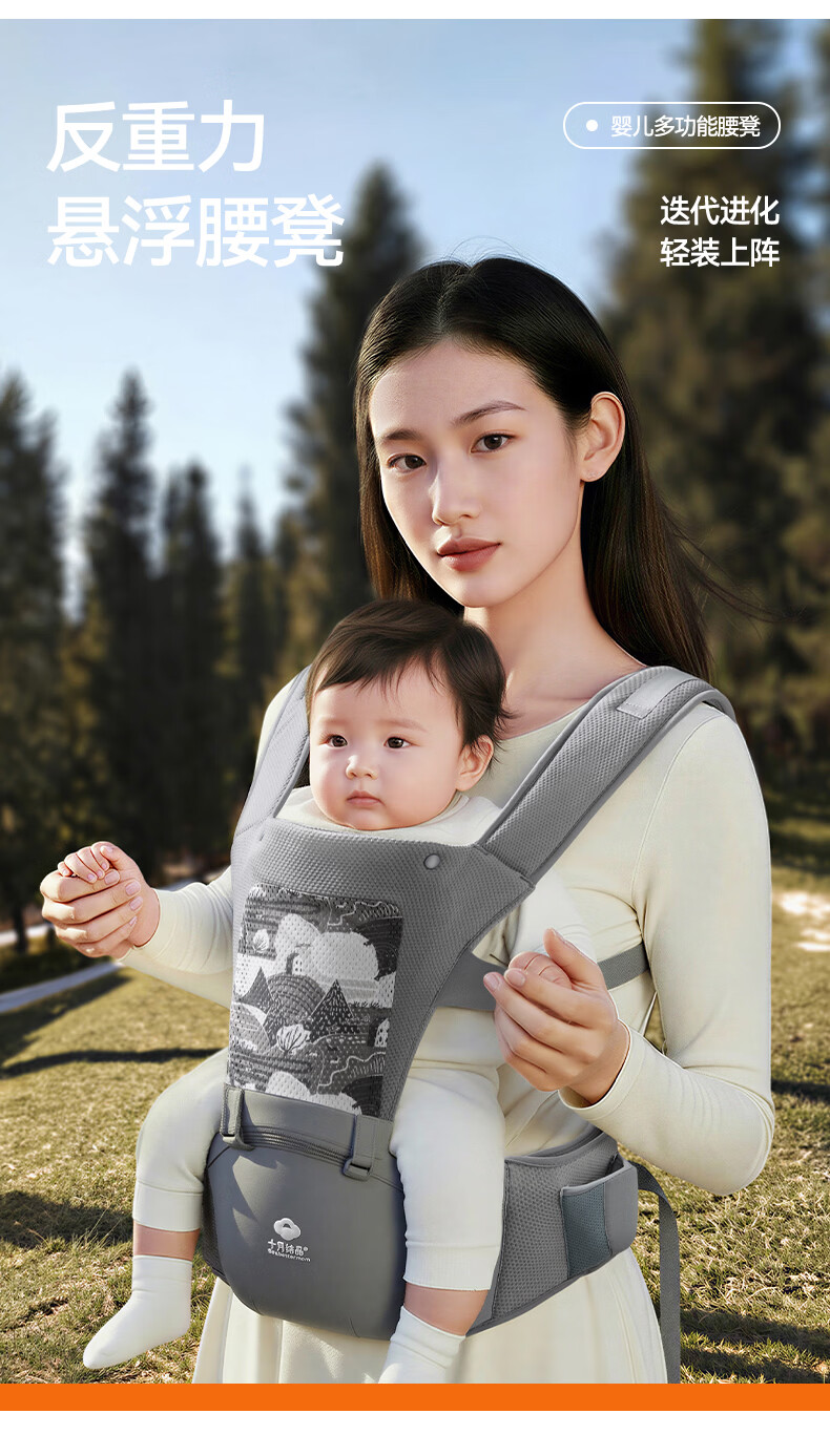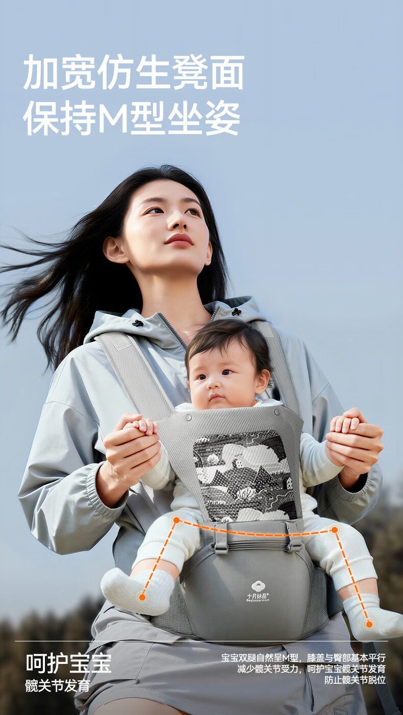 十月结晶腰凳婴儿背带抱娃神器四季通用透气肩带多功能宝宝坐凳 青鸾灰